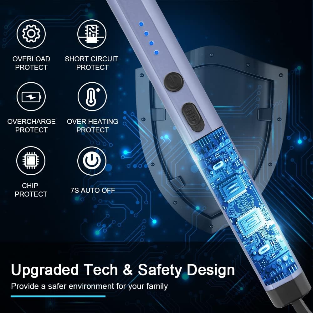 Safety Protection Design - This long stem lighter can protect you from the flames at a safe distance. And the safety lock make sure that you can only generate the sparks after unlocking, it's all about your children's safety. Advanced chipset prevents overheat and overcharge. This USB rechargeable lighter for candles will also automatically stop after 7 seconds of ignition.
