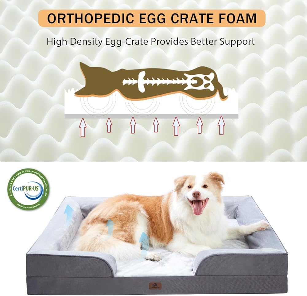Excellent Orthopedic Comfort: The orthopedic dog sofa is crafted with 3 inches of high-density egg-crate foam. This soft and elastic sponge can effectively soothe your dog's muscles, alleviate pressure points, and relieve joint pain, especially for elderly dogs with anxiety or arthritis. It provides a soothing and relaxing retreat tailored to their needs.