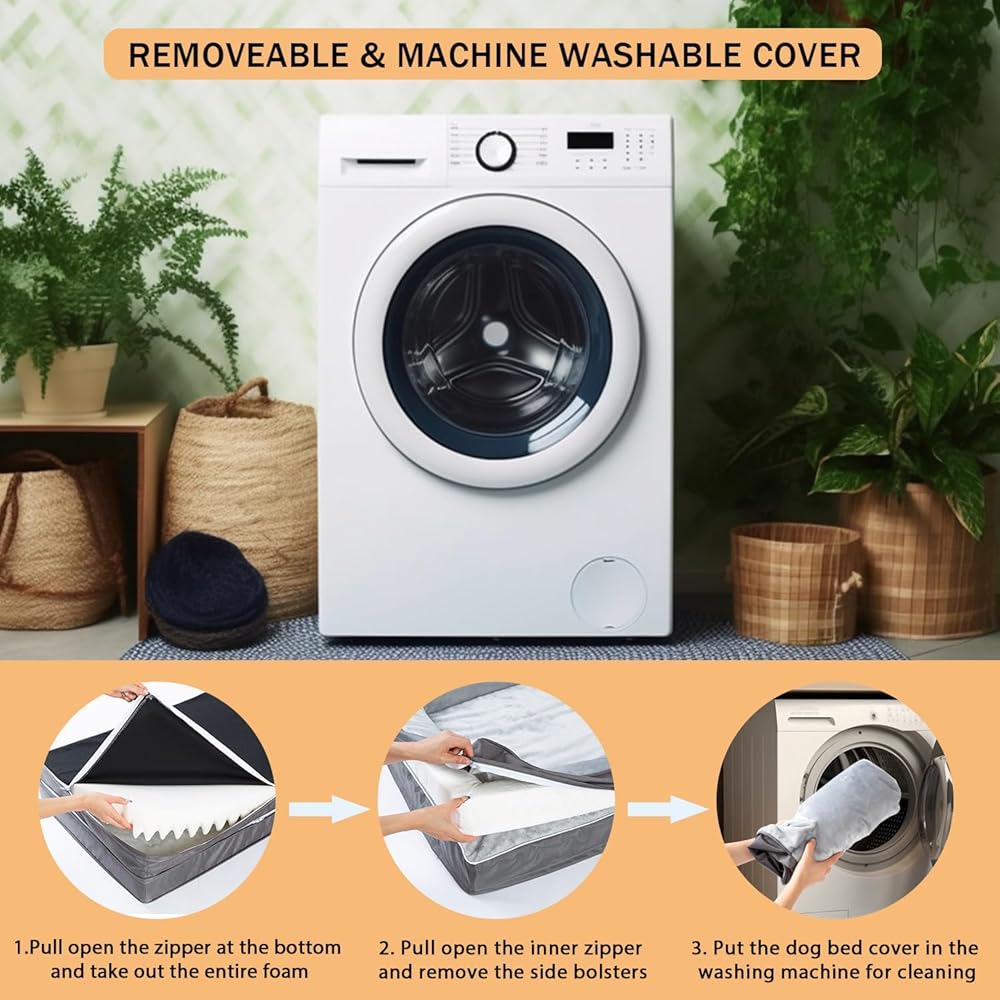 Waterproof and Easy Cleaning: Our dog bed is equipped with a waterproof cover, making it resistant to spills, accidents, and moisture. The removable bottom and side sponges allow the entire cover can be washed by machine more easily, and make the shape of the bed non-deformable and durable. Its nonslip bottom ensures stability for your pet's safety and comfort.