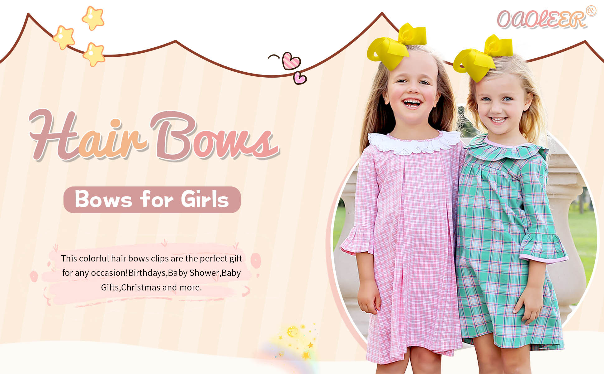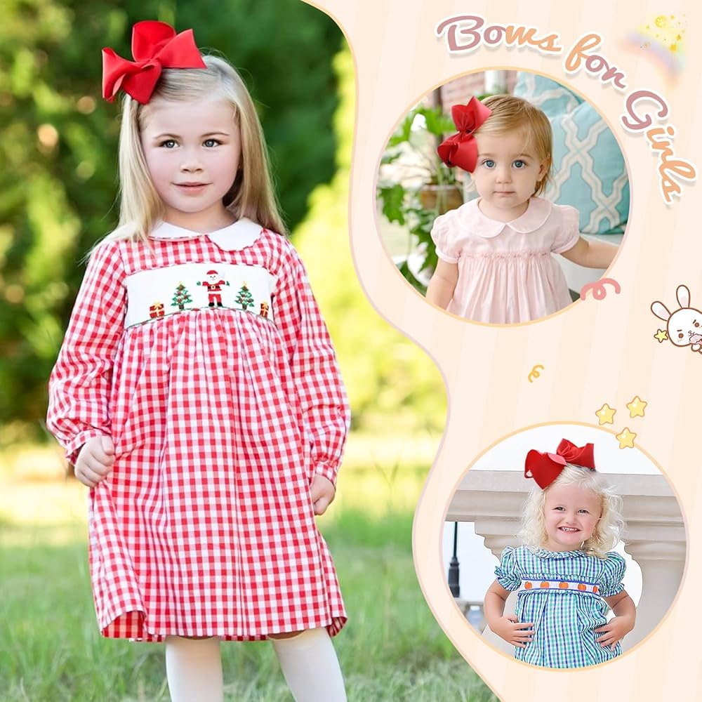 🎀【Girls Bows Size 】-The size of the girl hair bows is 6 inches long, 1.5 inch width. These hair bows are perfect for toddler pigtails! It's a great choice for clipping some hair to the side, decorating braids, ponytails and pigtails.