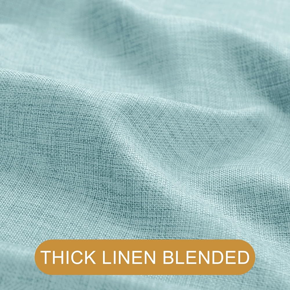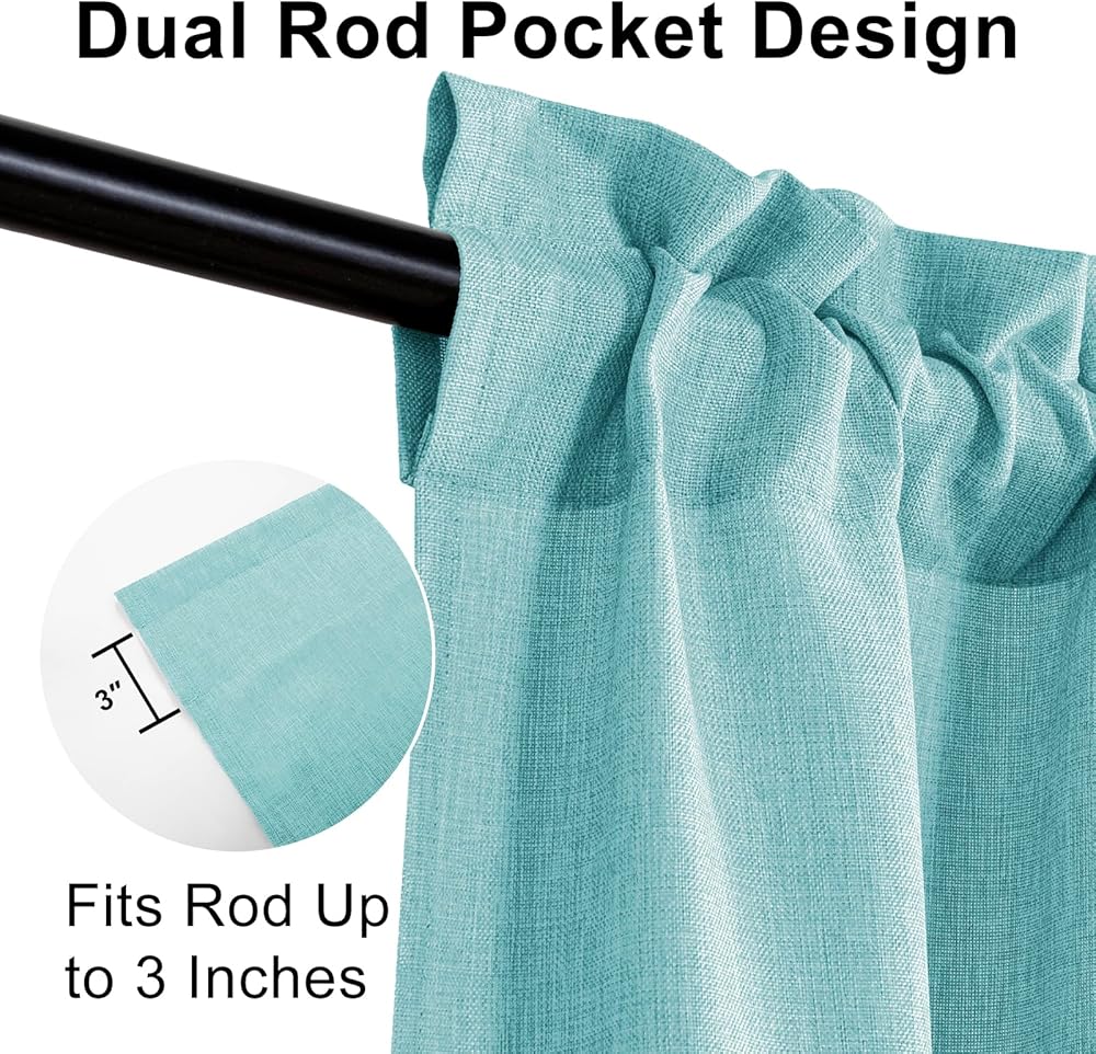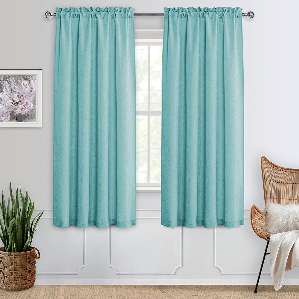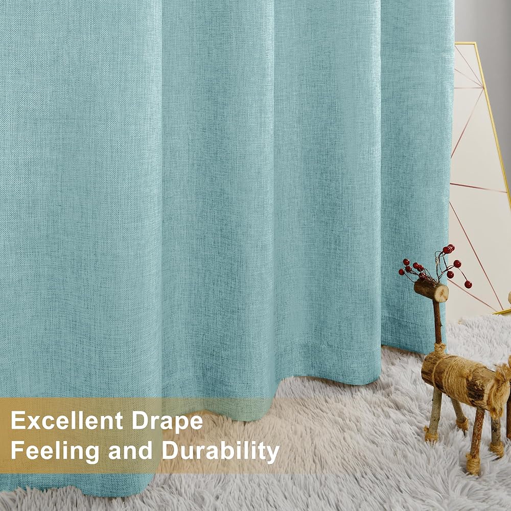 JIUZHEN Faux Linen Curtains for Bedroom, Rod Pocket Thick Semi Sheer 63 Inch Length 2 Panels, Privacy Protected Light Filtering Drapes for Living Room, 42 x 63 Inch, Aqua