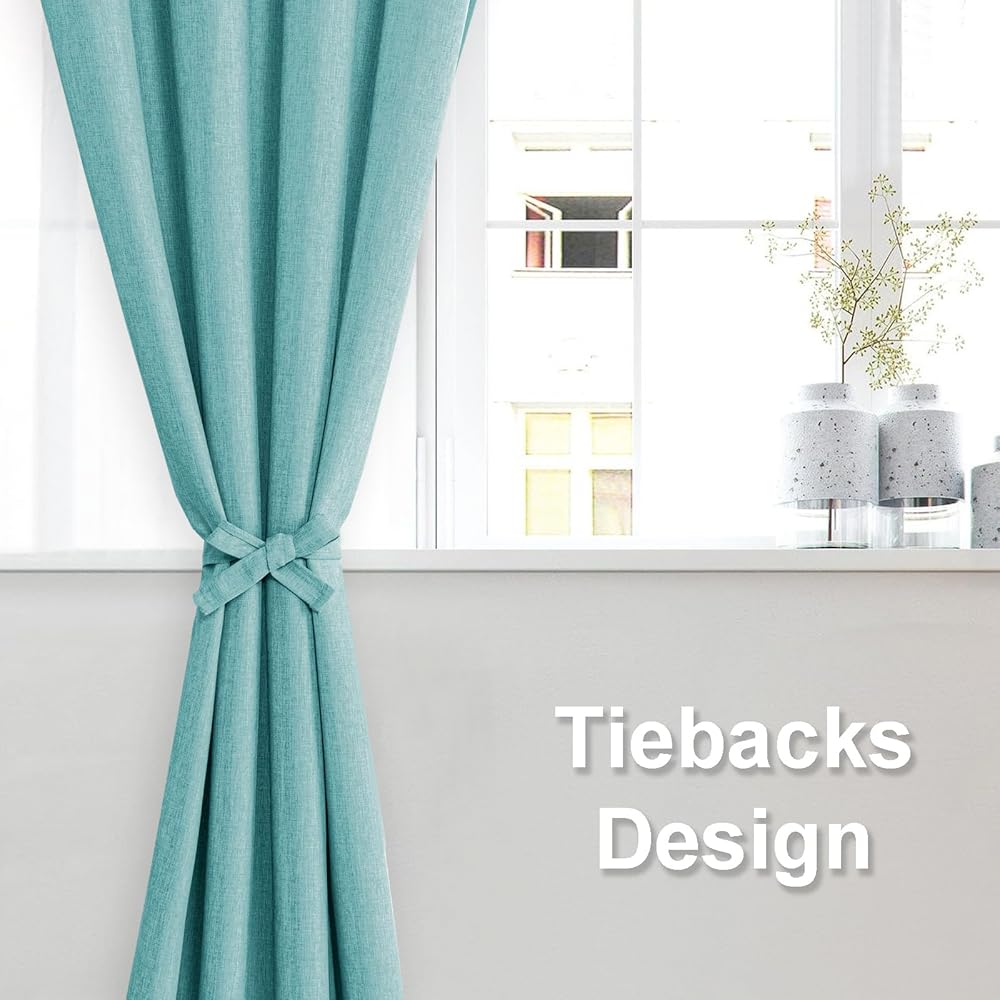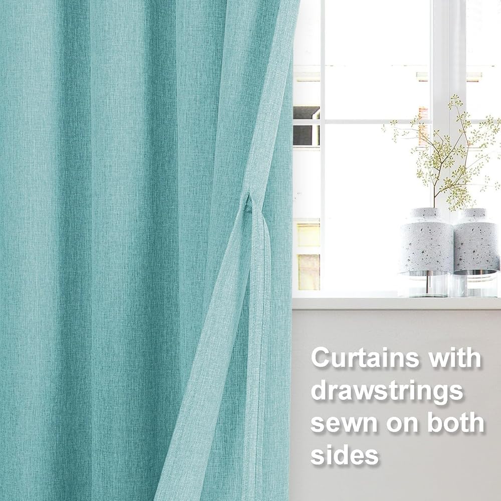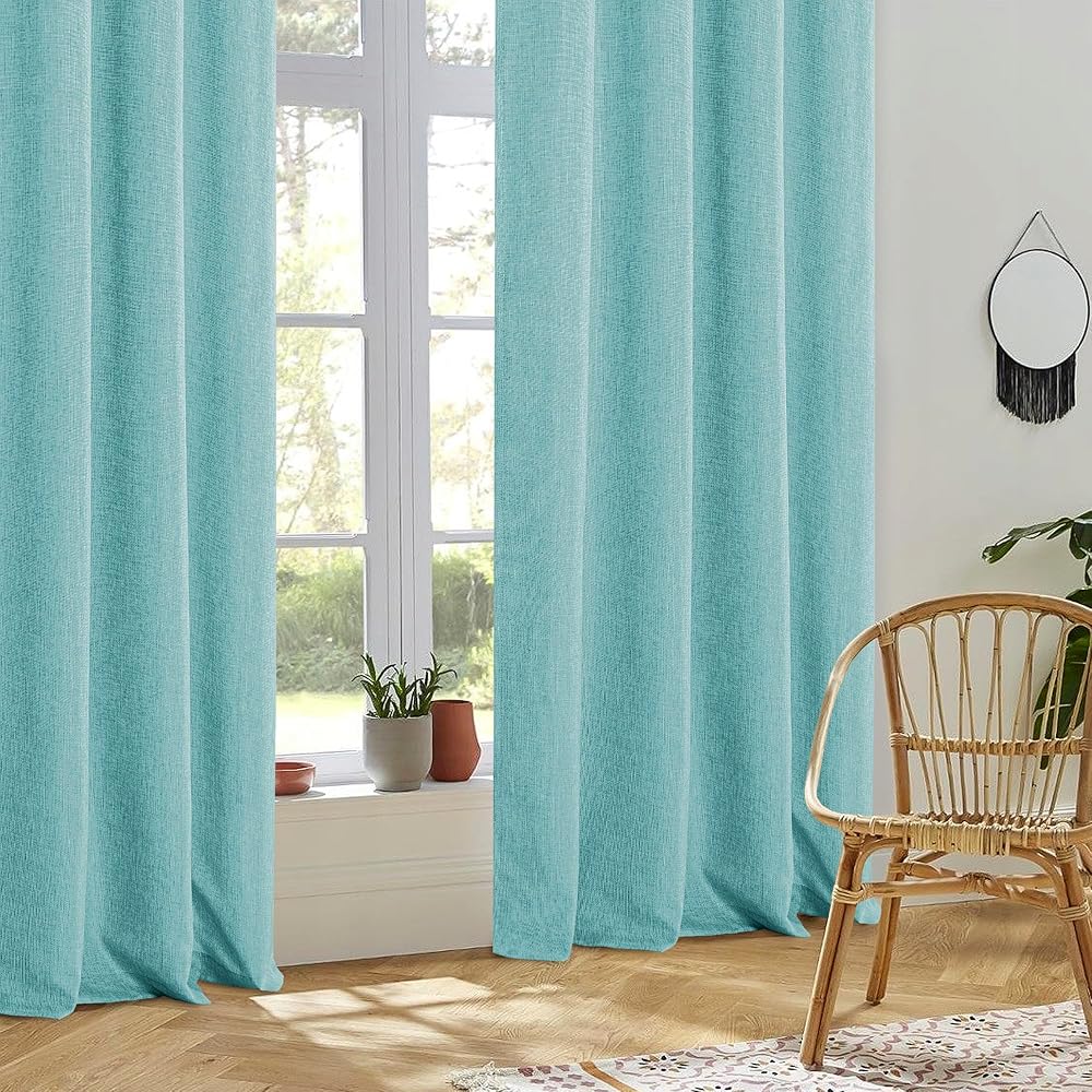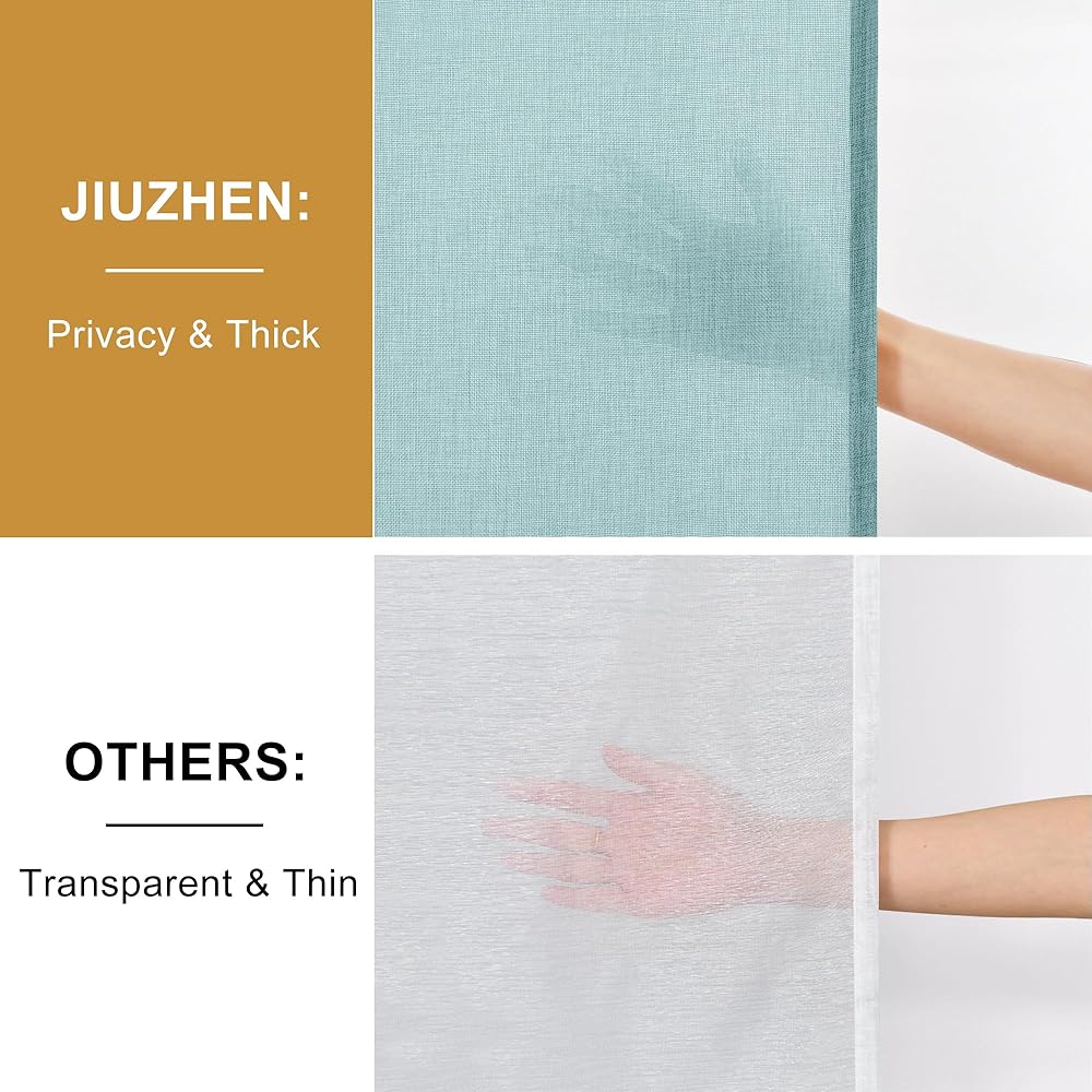 JIUZHEN Faux Linen Curtains for Bedroom, Rod Pocket Thick Semi Sheer 63 Inch Length 2 Panels, Privacy Protected Light Filtering Drapes for Living Room, 42 x 63 Inch, Aqua