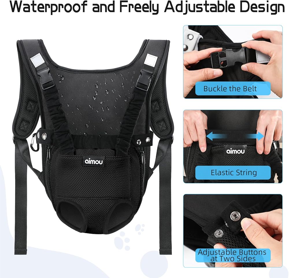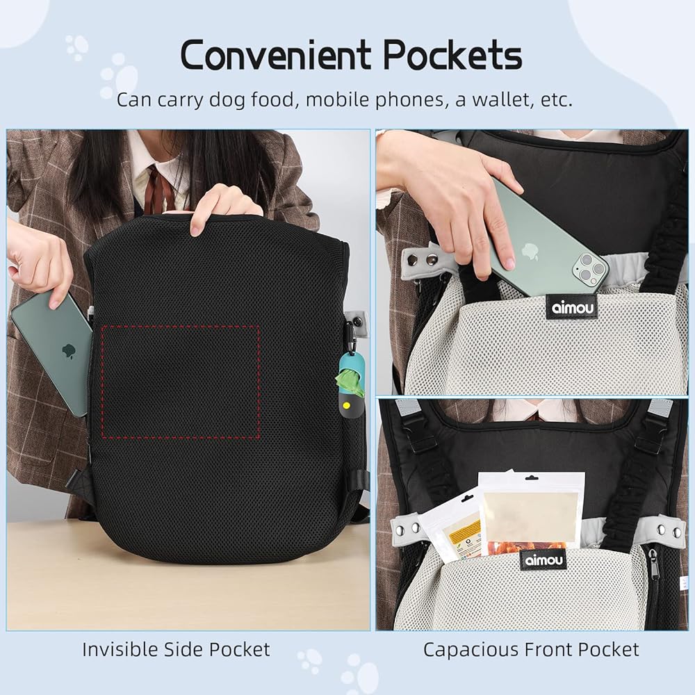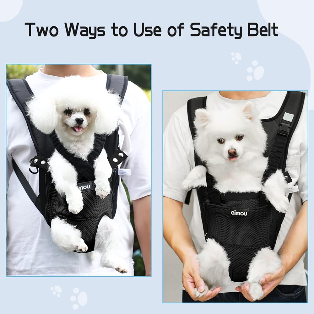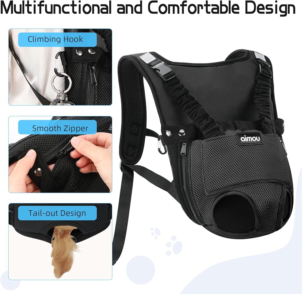 Pet Dog Carrier Backpack, Aimou Adjustable Hands-free Doggie Front Pack Safety Travel Bag, Breathable Legs & Tail Out for Traveling Hiking Camping for Small Medium Dogs Cats Puppies, Black Large