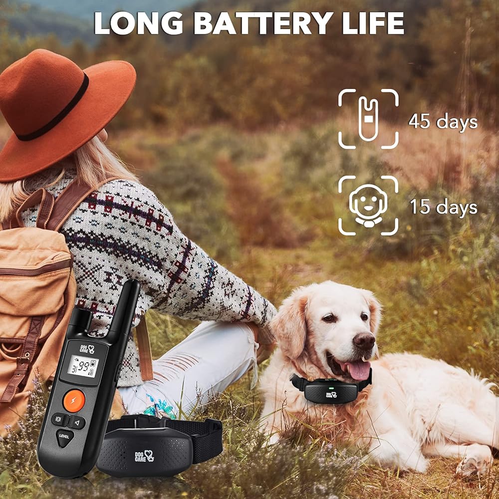 Long-lasting battery life; Both remote and receiver are rechargeable; It is easy to recharge the dog training collar with remote via USB from any USB devices or wall outlet; It lasts longer compared to the battery-operated one; The long battery runtime of this DOG CARE dog shock collar is a true lifesaver on those camping or tailgating weekends, with the receiver's battery lasting for up to 15 days in standby mode