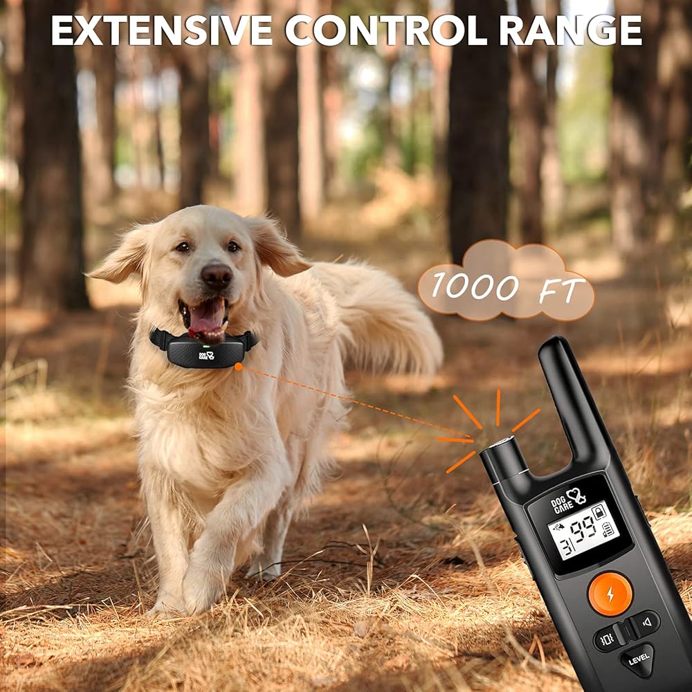 Intuitive design, portable and easy to use; Unlike those heavy DOG CARE dog training collars, this training collar for dogs is more portable, only half the size of a palm; This dog training shock collar is also designed for easy operation, with an intuitive design that fits beautifully in the palm of your hand; Fingertip-placed controls and thumb dial allow you to adjust the static level quickly; No matter you are a first-time pet parent or seasoned trainer, you will enjoy this intuitive design