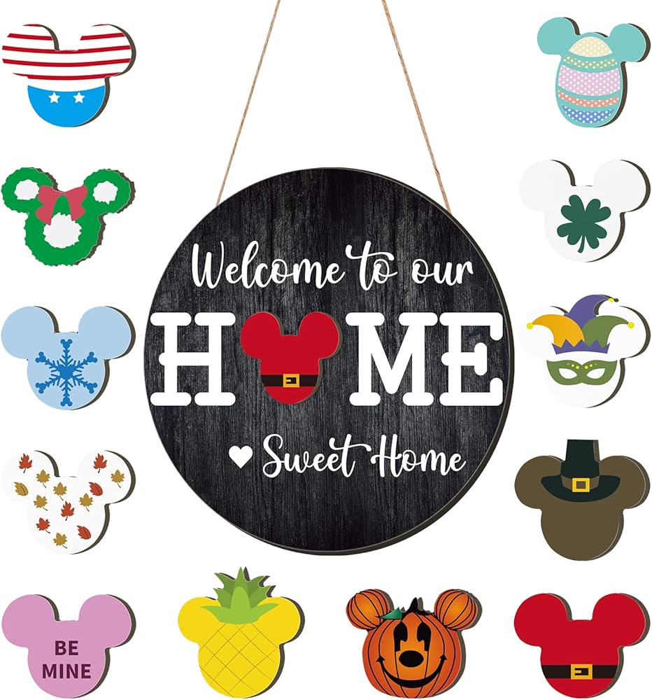 13 Pcs Mouse Interchangeable Door Sign,Seasonal Welcome to our Home Sign for Front Door,Mouse Seasonal Door Wreaths Welcome Signs for Valentine'S Day Housewarming Gifts Wall Porch Decor