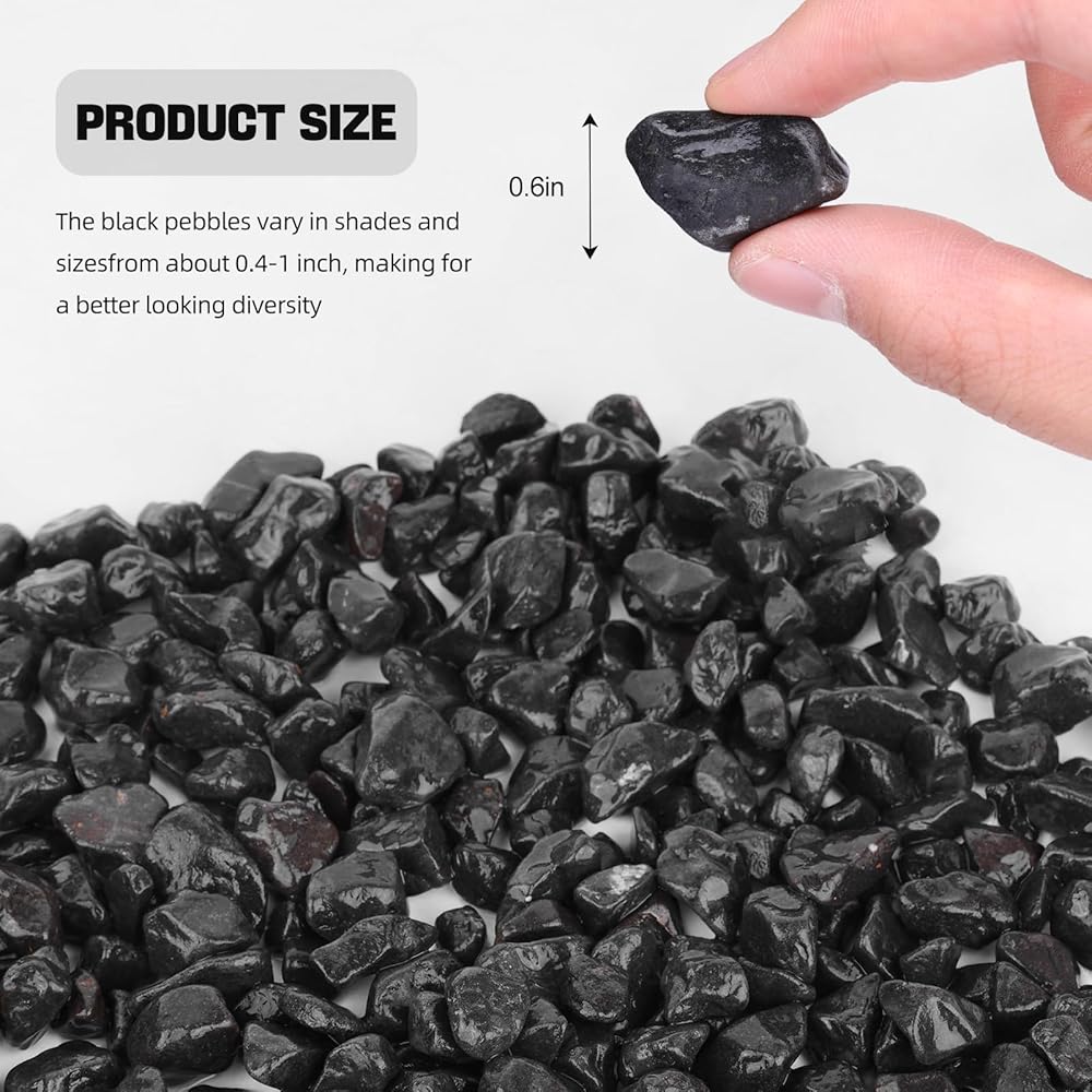 🌿Multipurpose Use: These versatile black rocks cater to a wide range of applications. They can be vase fillers, they can be rocks for plants, they can be fish tank rocks, they can be rocks for indoor, they can be rocks for outdoor, use your imagination and let them be applied to the places you need to decorate.🌱