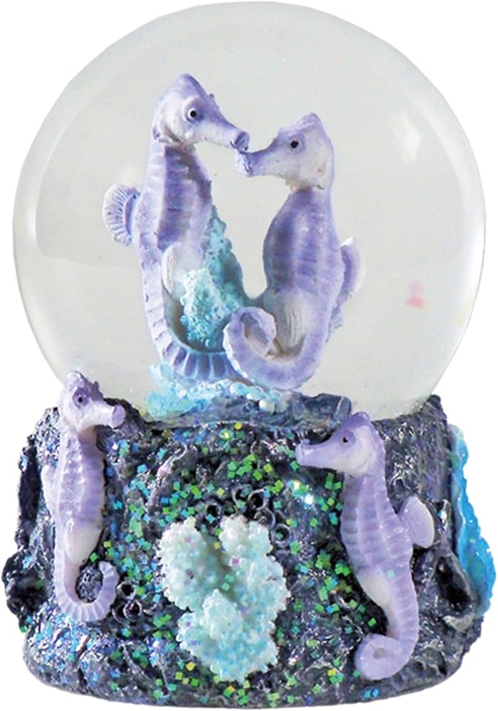 The design of the painstakingly handpainted base seamlessly compliments the shape and position of the seahorse figurines encased in the globe. Carefully tip it up to see the glitter floating through the water, mimicking the sunlight playing on the surface of the ocean. The purchased item will be a random selection from two colours. Collect the other animal themed snow globes in the Deluxebase Water Globe collection. Styles include: - Butterfly - Dolphin - Elephant - Flamingo - Giraffe - Lion - Monkey - Owl - Pandas - Parrot - Penguin - Reef Fish - Ring-Tailed Lemur - Sea Turtles - Seahorses - Shark - Tiger - Wolf - Zebra.