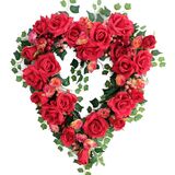 idyllic 18 Inch Red Roses Heart Shape Wreath for Valentines Day, Wedding, Home Decor, Indoor Outdoor Use, Valentines Day Wreaths for Front Door, Valentine's Day Decorations