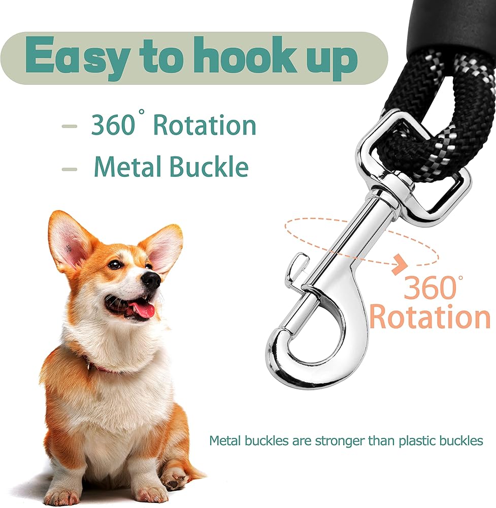 【SOFT PADDED HANDLE】 Leash with padded handle doesn't hurt your wrist, and allows you to keep a good grip. just enjoy the feeling walks with your dog and protects your hand from rope burn.