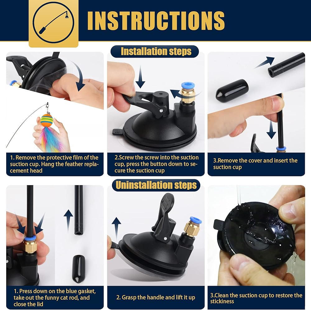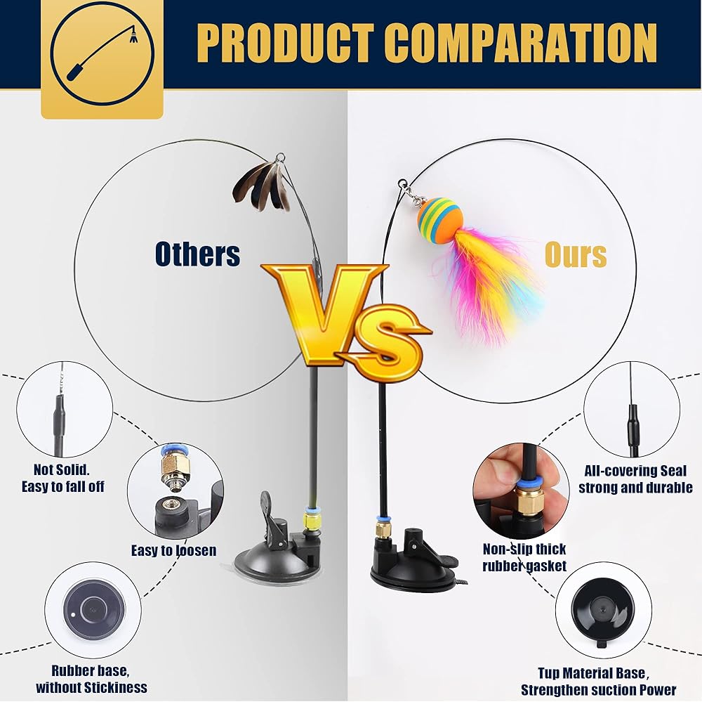 High-quality Materials: The funny cat stick uses high-elasticity and high-quality steel wire. The powerful suction cup is the latest improvement and can be firmly fixed on the smooth floor. The detachable cat feather toy kit can be reused, you can trust Acantha's quality assurance.