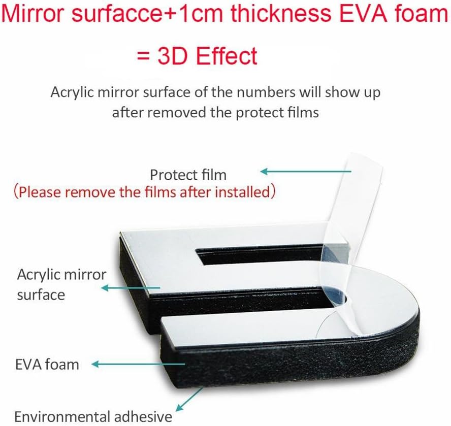 • 3D Effect : The number is made of 10mm thickness EVA Foam+1mm Acrylic Mirror Surface Piece