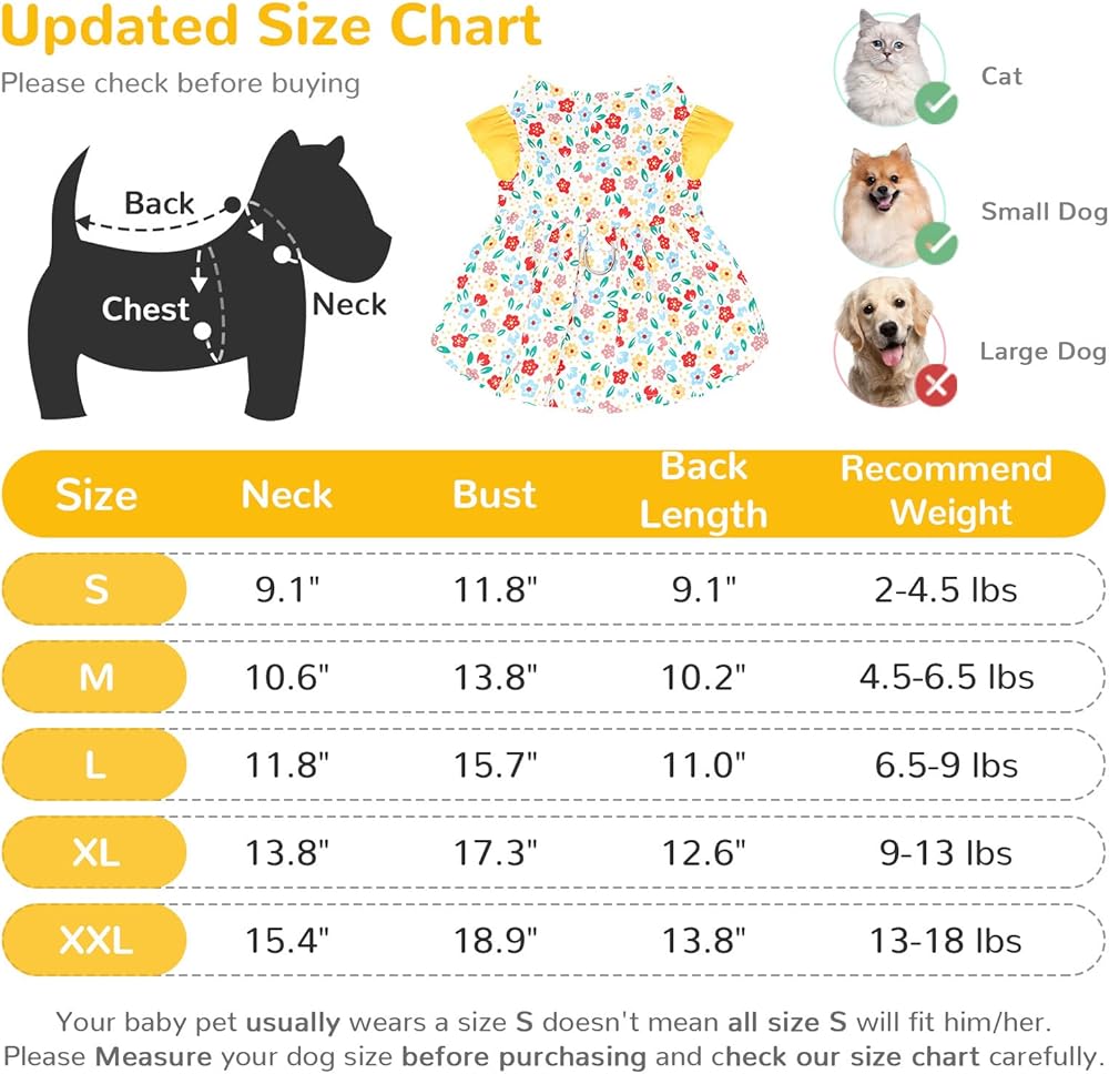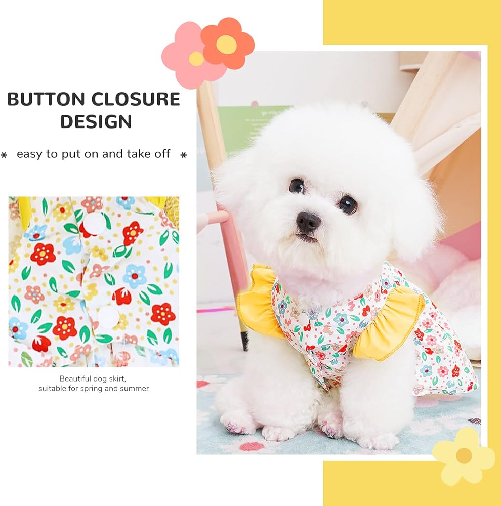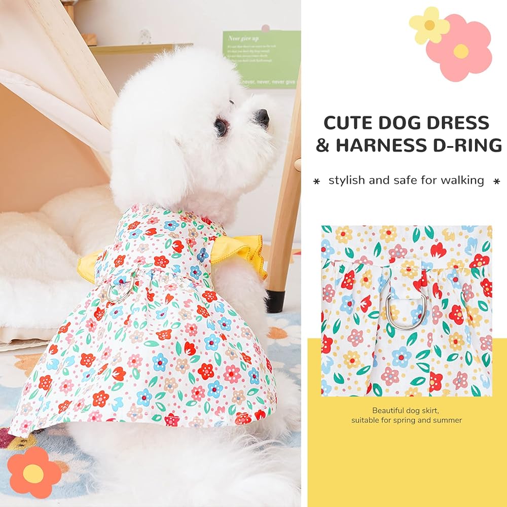 Small Dog Dress Summer Pet Dog Clothes for Small Dogs Cats Girl Cute Floral Puppy Harness Dresses with D Ring Pet Dogs Princess Birthday Dress Female Doggie Summer Outfits Apparel(Yellow,M)