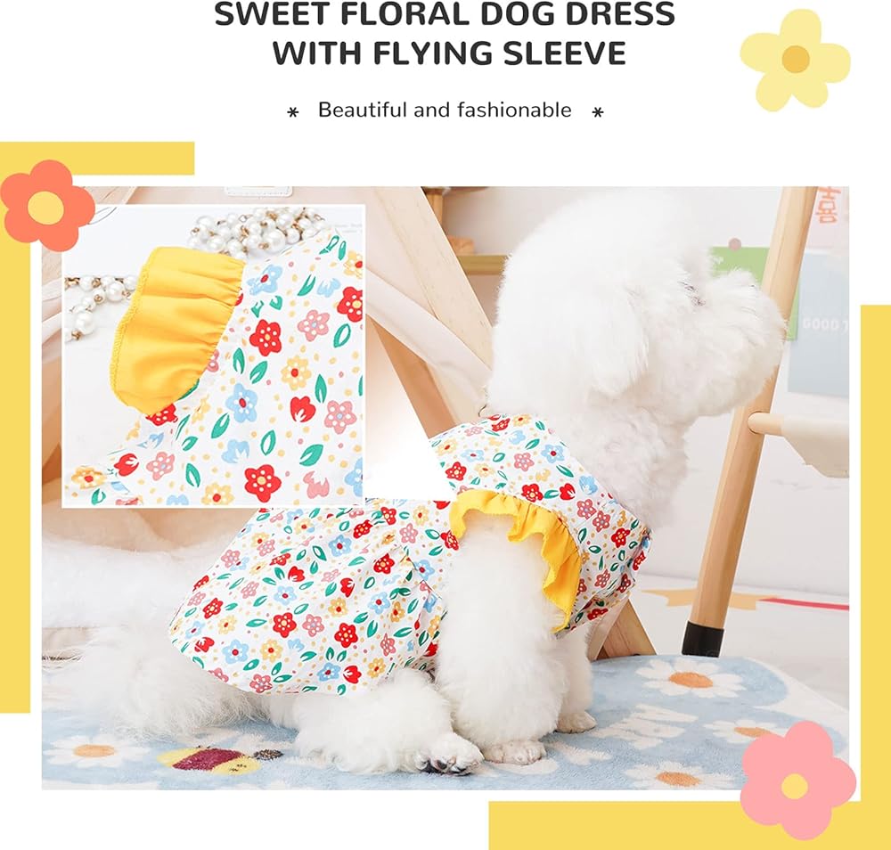 [Floral Cute Dog Dress]The pet dress features a cute floral design that will make your dog stand out from the crowd and look fabulous.It is perfect for daily wear, walks in the park,and attending special occasions.