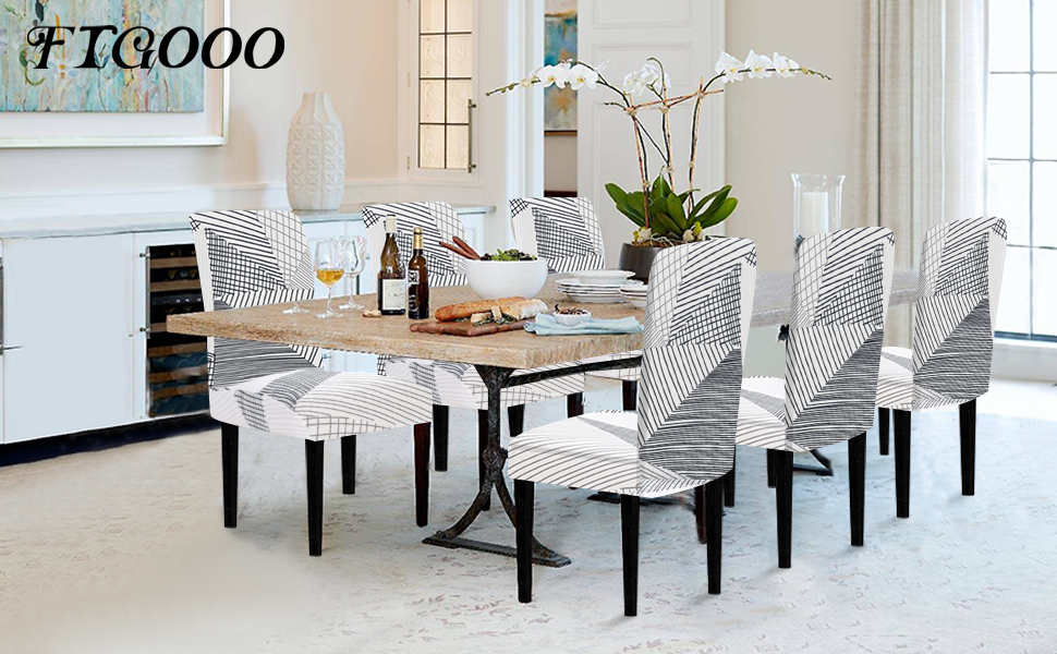 【QUALITY FABRICS】The FIGOOO chair covers for dining room are made of a high quality polyester + spandex blend, soft to the touch, comfortable. Perfect for adding elegance and sophistication to your home decor.