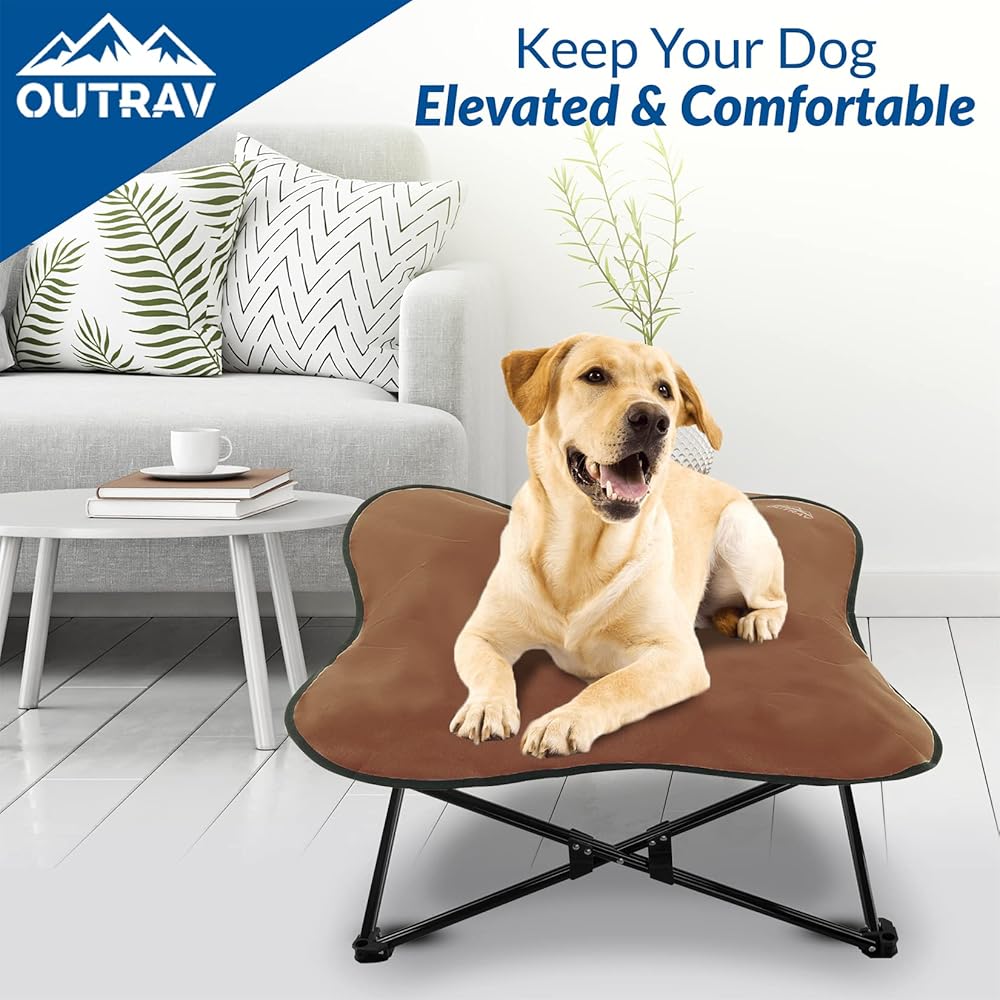 Outrav's original elevated dog bed pet cot is available in your choice of size. Both are perfect for camping on the beach with your pet, travel