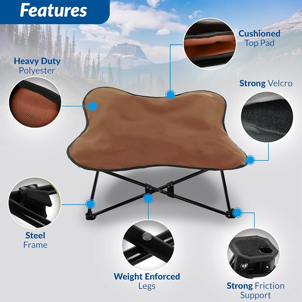ELEVATED LOUNGER BED FOR DOG & CAT: The ultimate portable dog beds for camping & traveling with your pet companion by your side, our cots are elevated to allow air flow, lightweight & easy to carry.