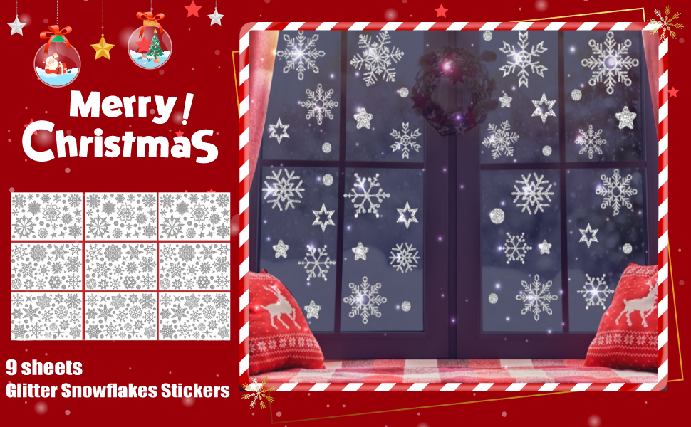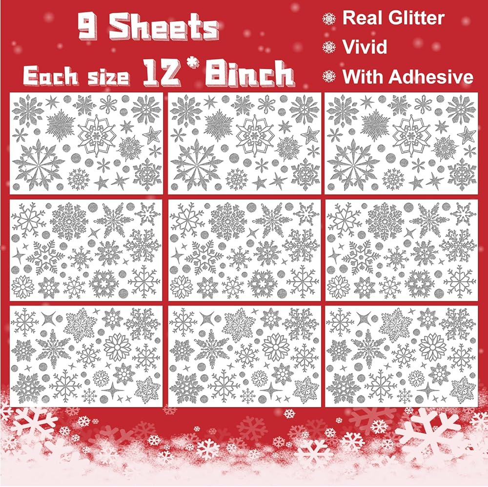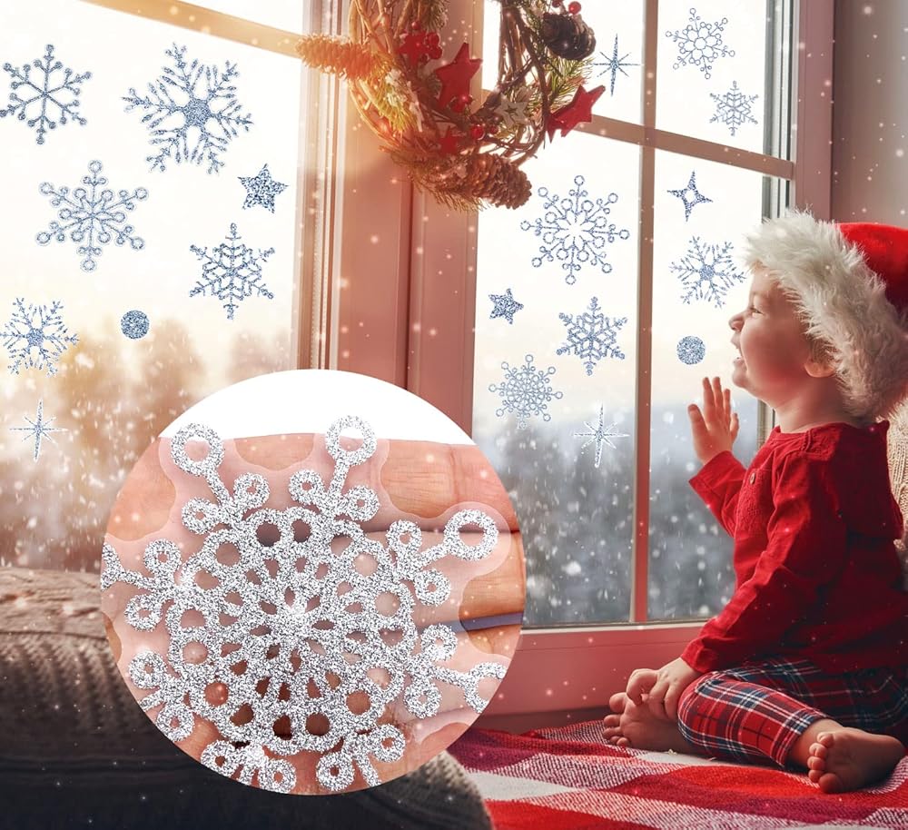 148 Pcs Christmas Wall Decals Glitter Snowflakes Stickers Window Stickers Winter Wall Decals Silver Frozen Stickers Home Decoration for Christmas Party Supplies…