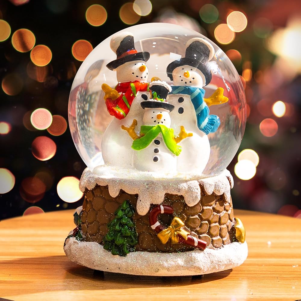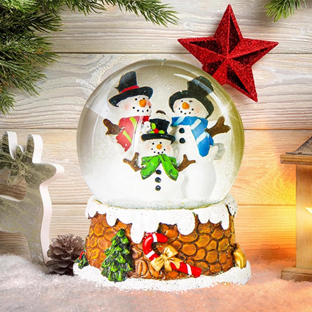 Christmas Snow Globe with Lovely Snowmen, Music Box Gifts for Kids Water Music Crystal Ball with Snowflakes 100 mm Festive and Fun for Holiday Décor and Gifts