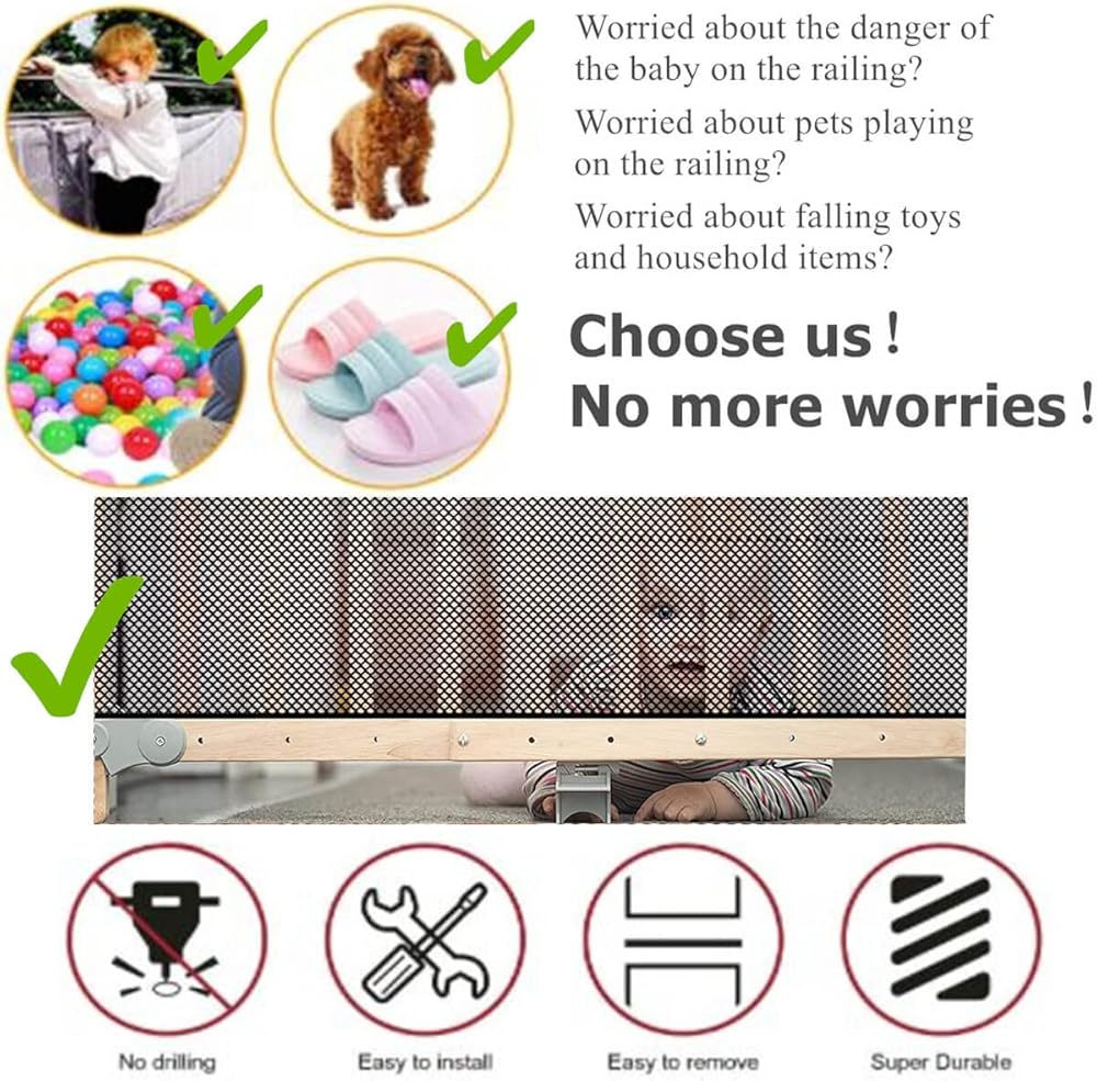 【 Kids Finger Protection Design 】Stair Netting Guard mesh holes are smaller than 0.5cm, so kids can not put their fingers through the mesh.