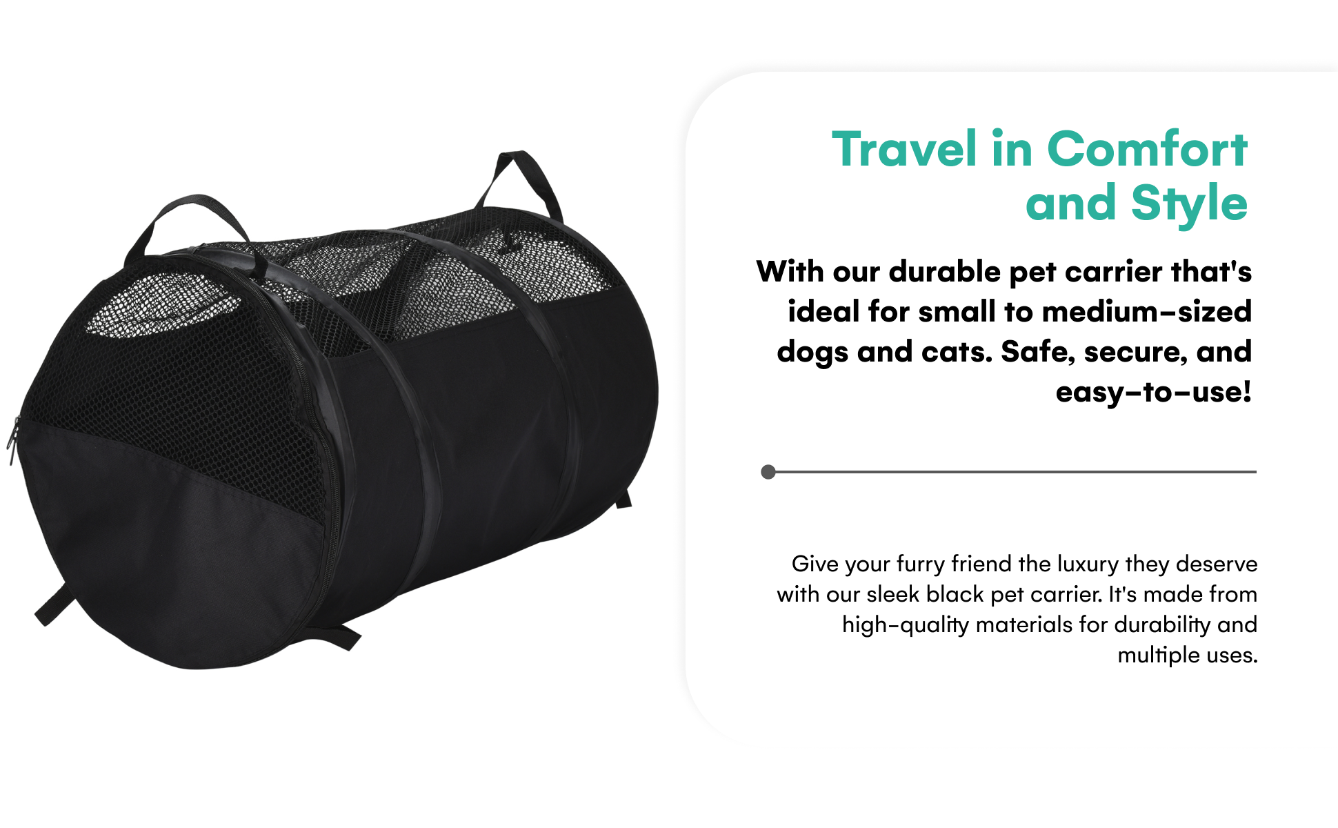 STYLISH DESIGN - Our pet carrier features a sleek black design that adds a touch of elegance to your pet's travel experience. The carrier is perfect for dogs, cats, & other small animals.