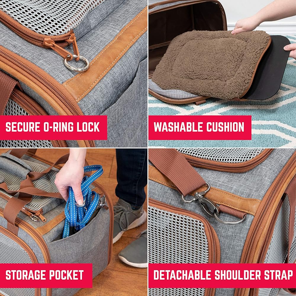 FOR CATS AND SMALL DOGS: The premium pet carrier is recommended for almost any size cat, as well as pomeranian, shih tzu, yorkie, chihuahua, pug, dachshund breeds and any other small to medium-small dog.