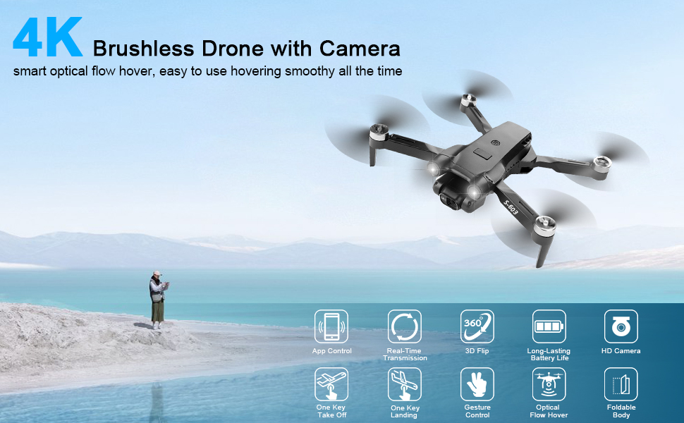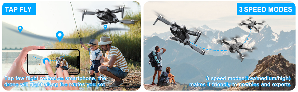 【Various Functions to Meet Your Needs】Auto adjustable camera, optical altitude hold, gesture and trajectory control, three speed mode, headless mode, one key takeoff/landing, one key flip, low battery warning and emergency stop, suitable not only for beginners but also for skilled players.