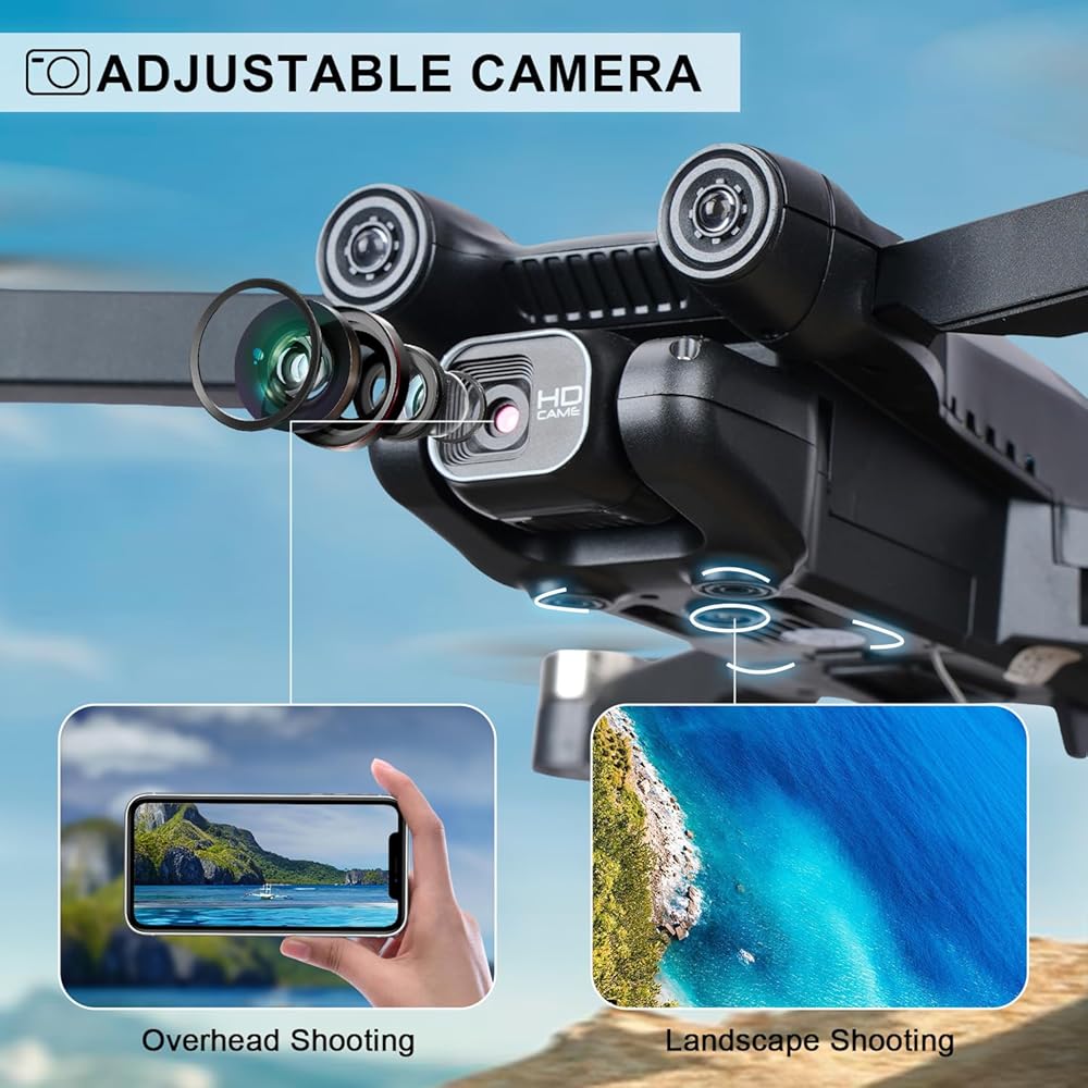 【4K HD FPV Dual Camera Drone】Our drone is design with high-definition pixels dual-camera, one is at the front of the drone and another is at the bottom of the drone. The front camera is 90°electrically adjustable, which can fit your various shooting needs.
