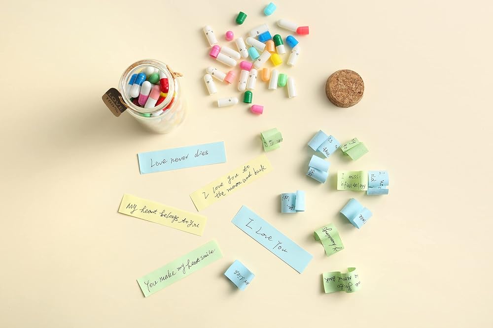 101PCS Cute Capsule Message Love Letters Plastic Capsule Love Letters in Wish Bottle,Lover Gift for Anniversary,Valentines,and Long Distance Relationships-Mixed Color