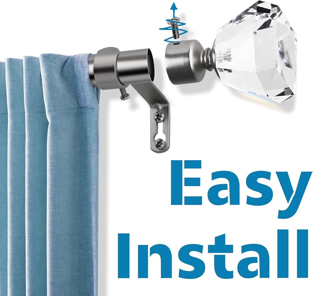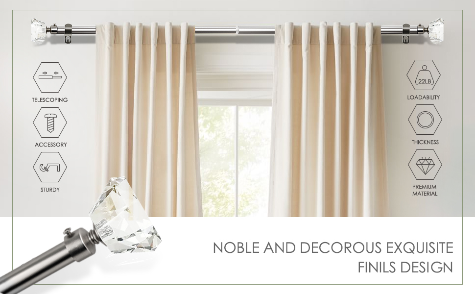 🏡Unique Design: Crystal Diamond Finials Design on either end provide a visually simple yet noble appearance, match windows of multiple styles.