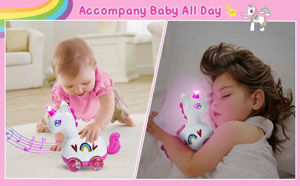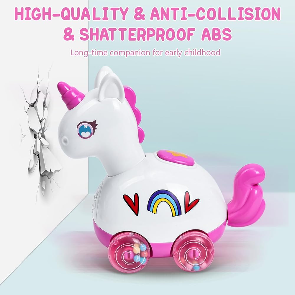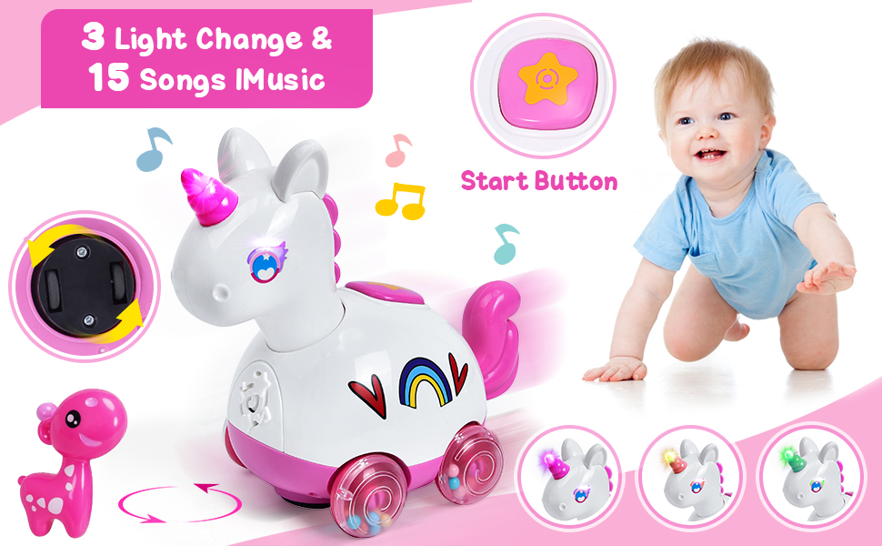 👶 Baby Crawl & Learn Walking - Once babies reach 6-12 months,they become eager to crawl and explore. This walking unicorn toy is designed to captivate newborns and infants aged 0-6 months. With 15 delightful tunes, this toy provides a rich learning experience for your baby. Promote baby's sensory development, hand-eye coordination and motor skills.