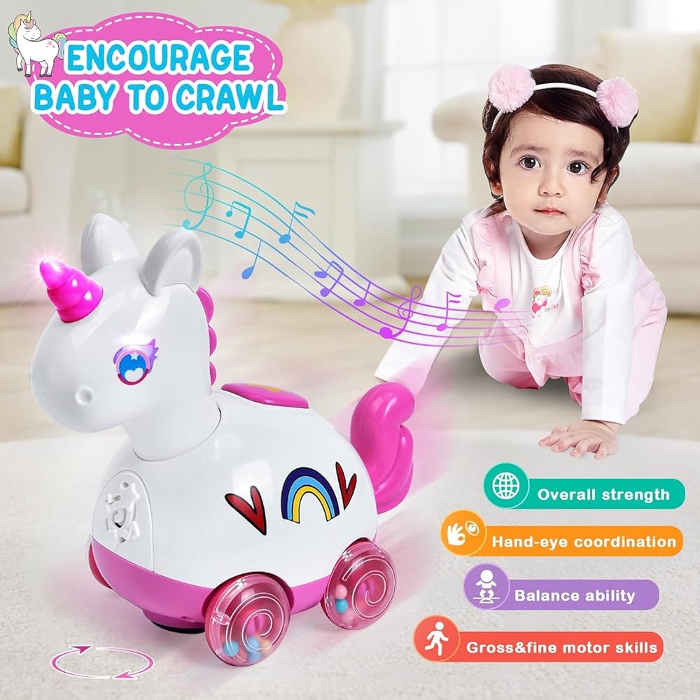 Musical Unicorn Crawling Baby Toys for 6 9 12 Months 1+ Year Olds, Baby Toy with Light & Music, Baby Learning Educational Development Tummy Time Crab Walking Toys, Infant Toys Girl Boy Babies Gift