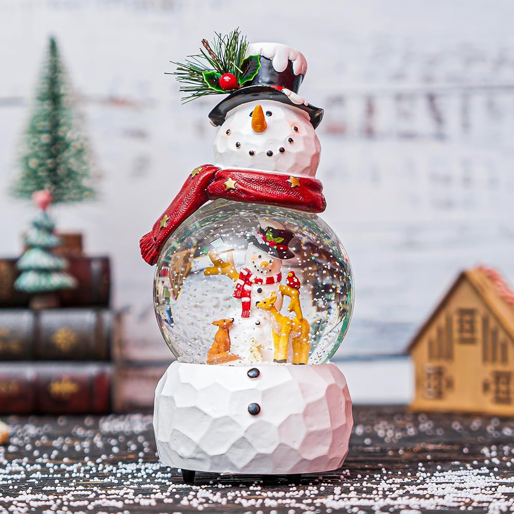 Christmas Snow Globe with Music Box Gifts Water Globe with Snowman Glass Decoration Musical Crystal Ball, Snowman and Deer for Kids Home Christmas Decor