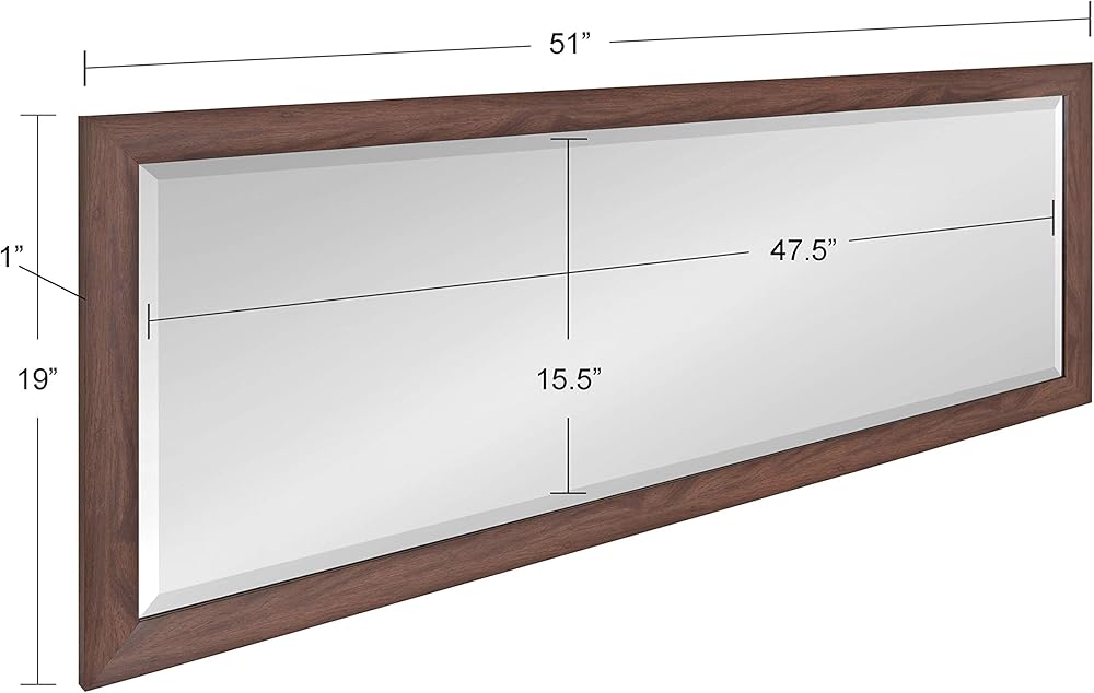 Provide your home with a beautiful, transitional wall accent that warms up your living space with the Beatrice Panel Wall Mirror. This mirror features a warm walnut finish for a cozy accent that seamlessly blends into any home decor aesthetic. Its frame is also constructed with lightweight polystyrene for easy mobility and installation in any room. Hang this full-length mirror in any living room, bedroom, bathroom, dining room, or entryway. Its versatile 51 inch by 19 inch dimensions are perfect for giving you a last-minute touch-up or simply adding more light within your space. Adding a wall mirror to your home expands the scope of your home by reflecting more light, creating a more open concept. Hang one on its own or design a symmetrical wall display by hanging multiple in a row. The Beatrice Panel Wall Mirror hangs on the wall in a matter of seconds thanks to convenient metal D-ring hangers securely attached to the back. It's a great way to enhance your decor without overshadowing your other favorite pieces.