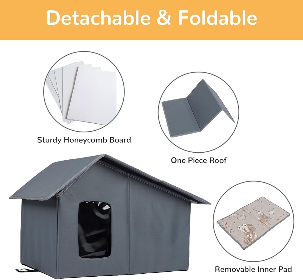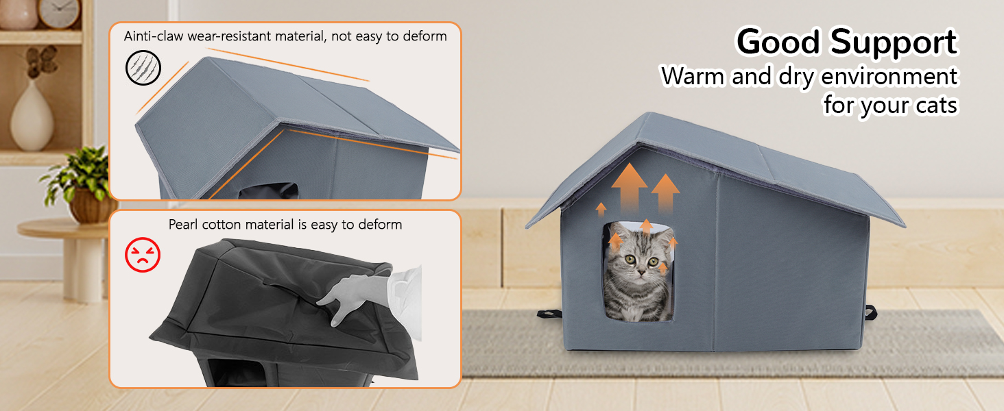 【ANTI-COLLAPSE CAT HOUSE】Arquiel cat houses are made of high quality honeycomb panels for support, which have better support and load-bearing performance, and are not easy to collapse due to rain and snow accumulation or cats' bad climbing and lounging habits.