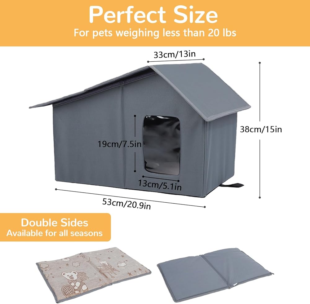 【LARGE SPACE PET SHELTER】The outdoor cat house measures 20" X 17" X 15", the larger space allows the feral cat shelter to accommodate more different kinds of small animals.