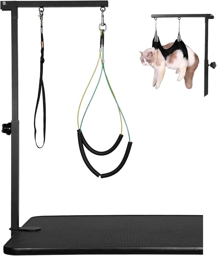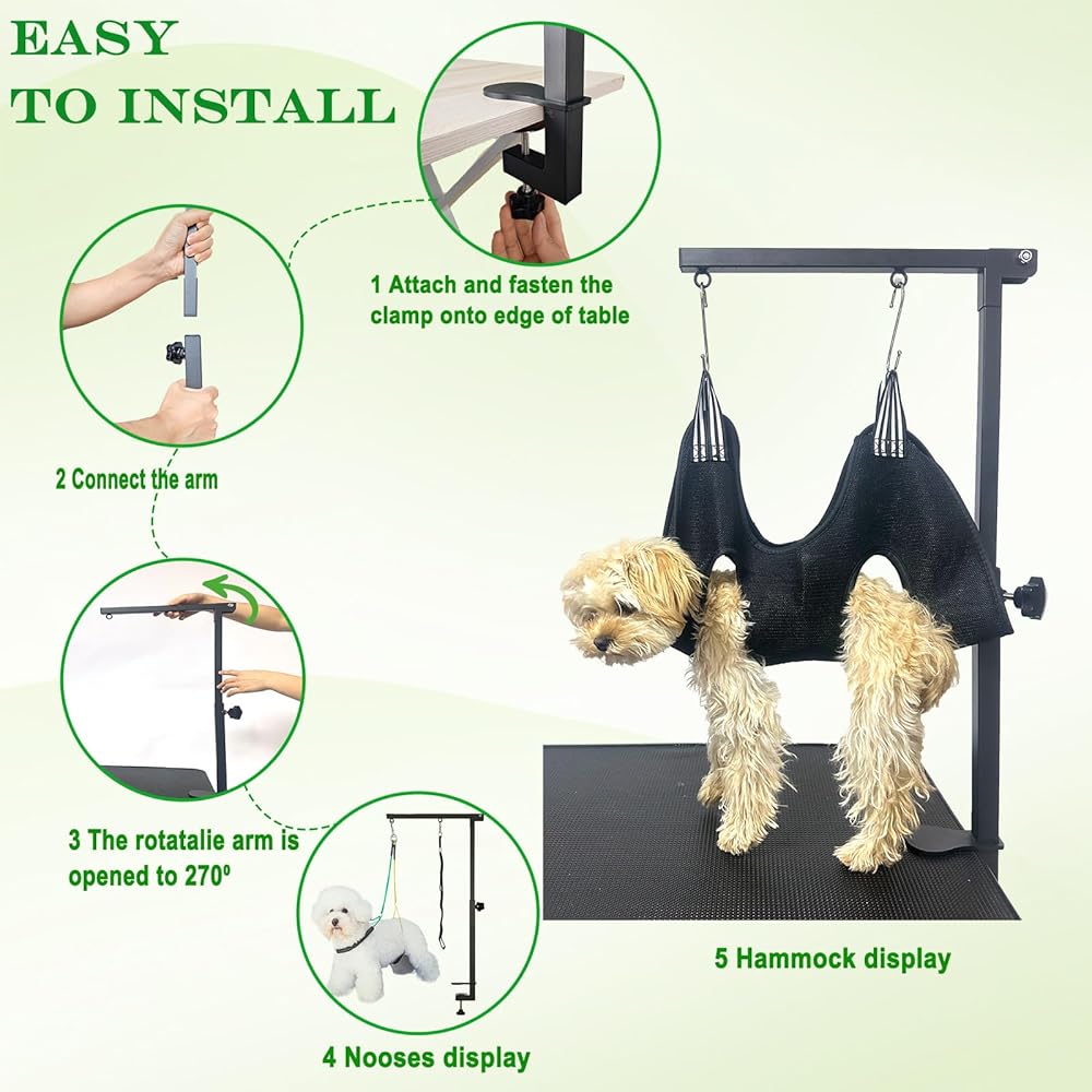 Adjustable Dog Grooming Arm with Pet Grooming Hammock,2 No Sit Haunch Holder&Loop Noose, Foldable Dog Grooming Table Arm for Small Dogs&Puppies,Arm for Grooming Tables,Pet Grooming Stand