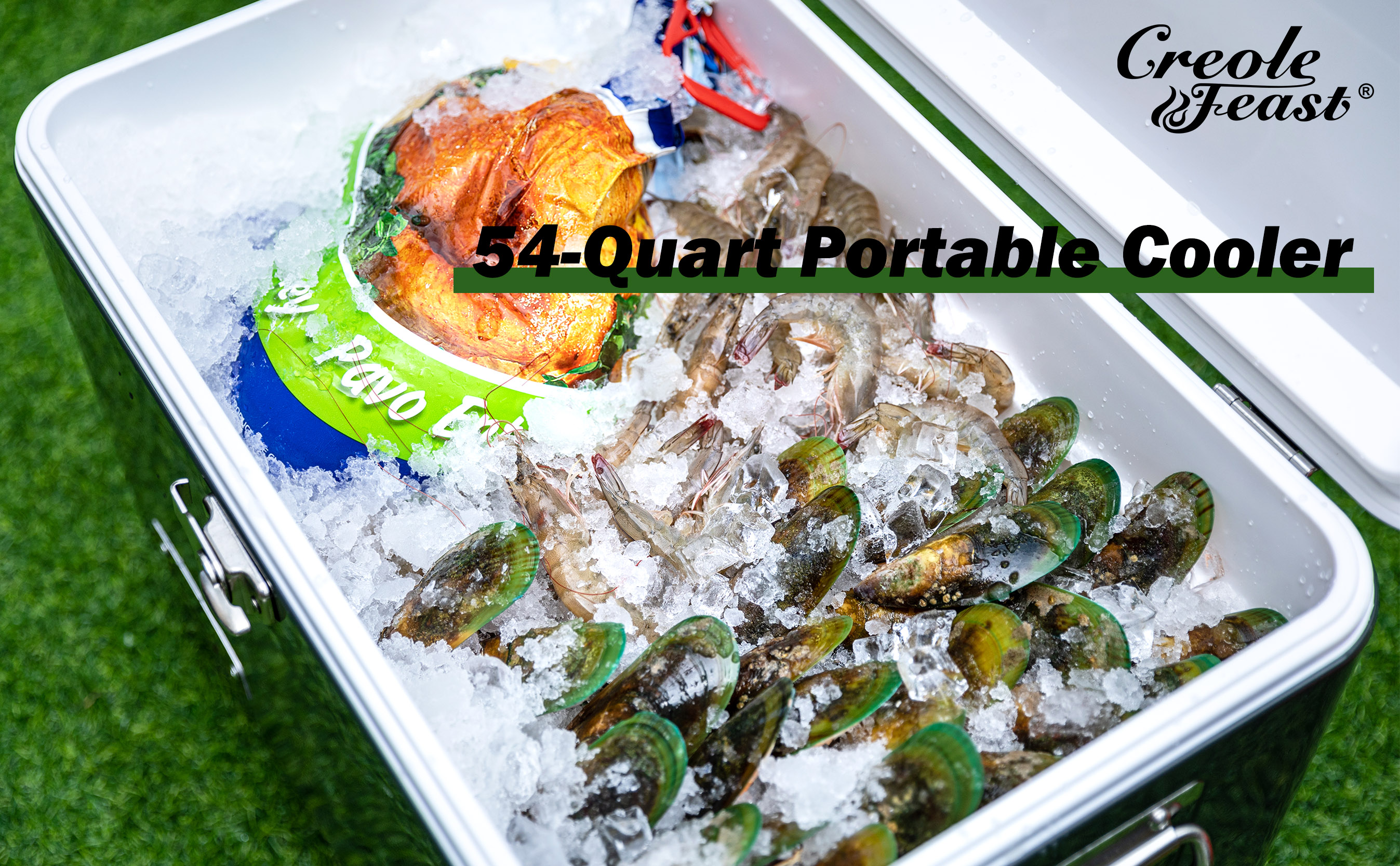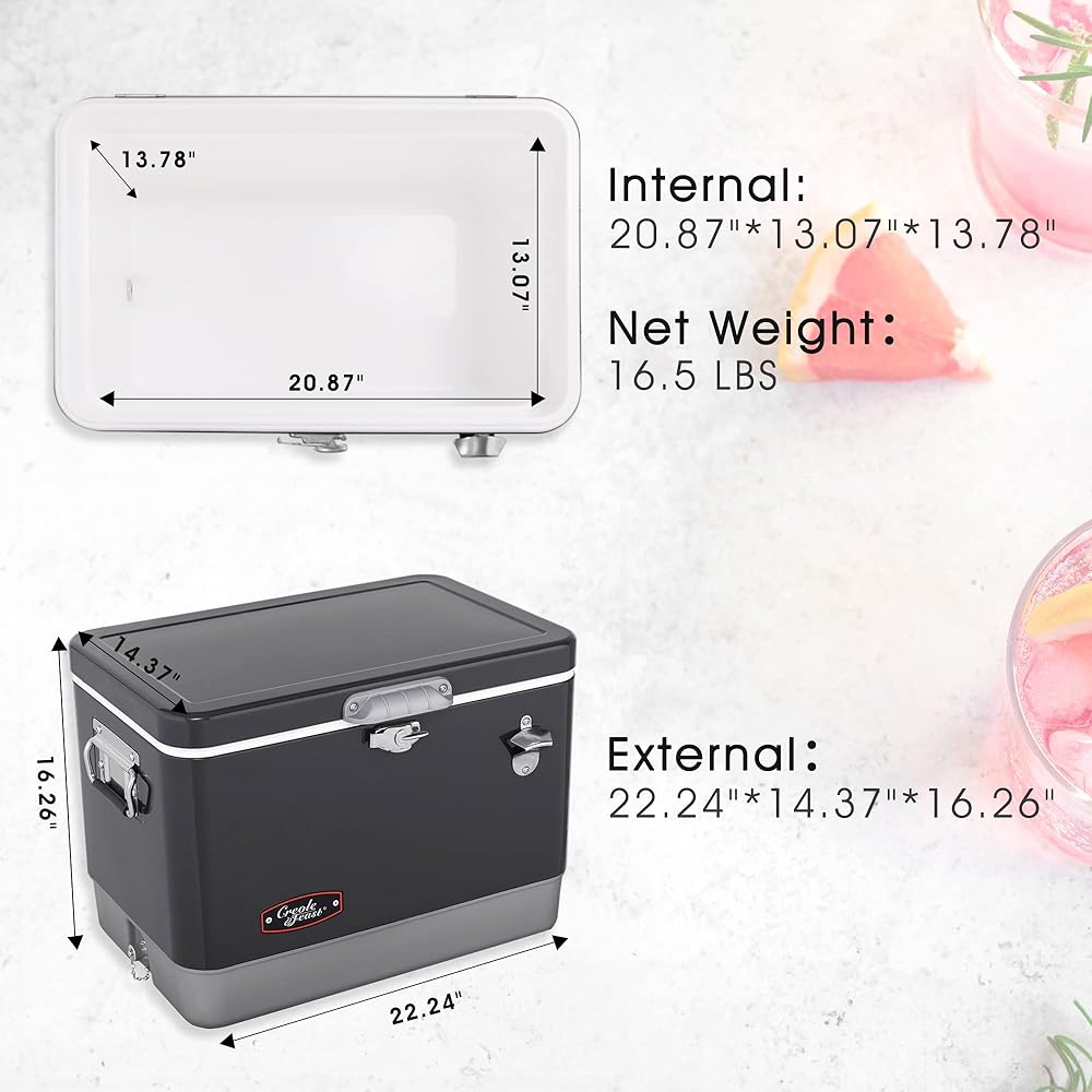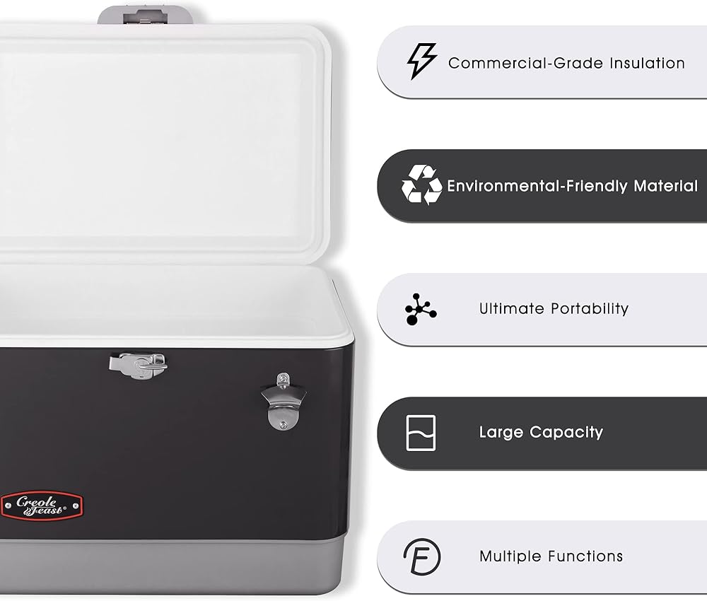 Summertime is slipping away, we can't possibly let the moment go by without having a nice weekend outing. But how to beat the extreme summer heat and stay cool? With Creole Feast® CL5401D 54-Quart Portable Cooler, you'll always have the coldest drinks and refreshments within arm's reach which are the best weapons to help relieve the scorching temperatures. Large enough for plenty of beverages at once, you can gather a group of friends or a whole family to make summer day as cool as possible. With this cool cooler, you will cool off inside and outside no matter how hot it is.