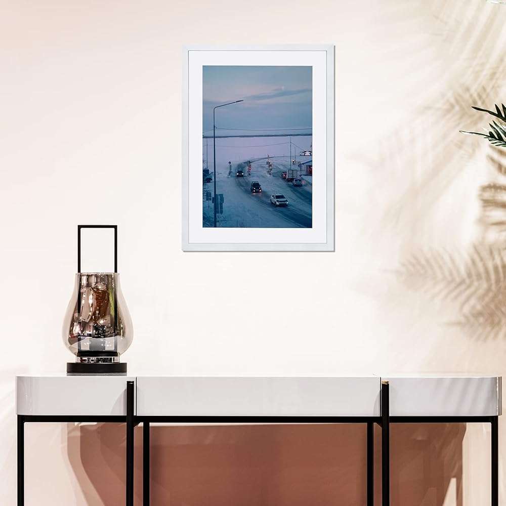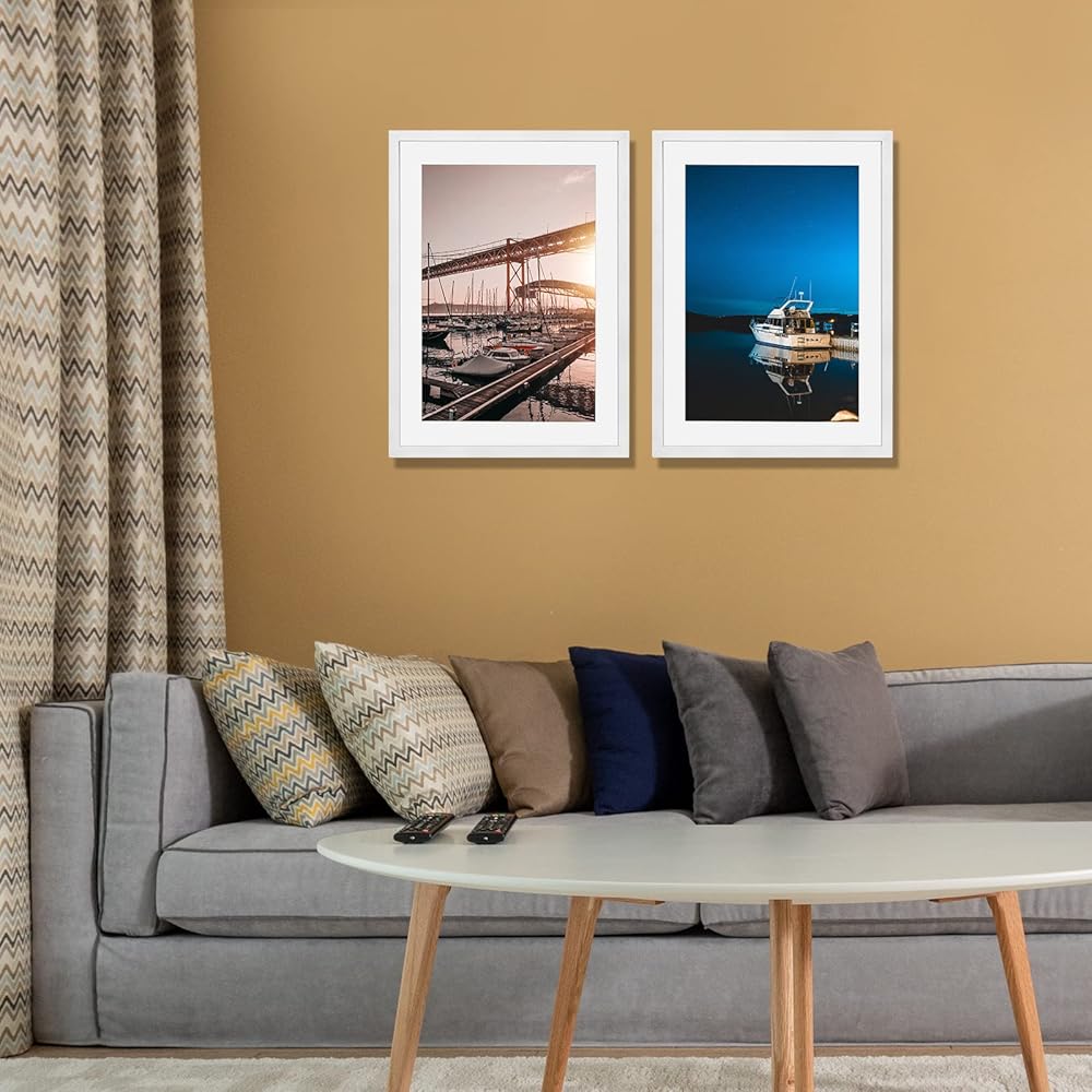 20x28 Poster Frame Matted to 16x24 White Soild Wood Display Picture Puzzle Artwork Canvas Art Painting 16 by 24 with Mat Opening or 20 x 28 without Mat Horizontal or Vertical for Wall Hanging