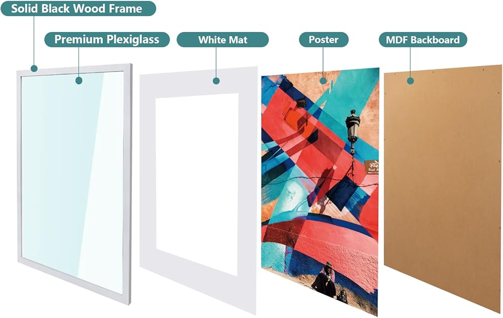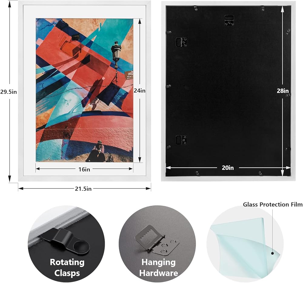 √POSTER SIZED FRAME FOR YOUR: This poster frames measures 20" x 28" without mat and 16" x 24" with mat, offering two popular sizes from which to choose and two looks, depending on your personal preferences.Place it in your office, home or wherever you might enjoy looking at its artistic or photographic contents most.