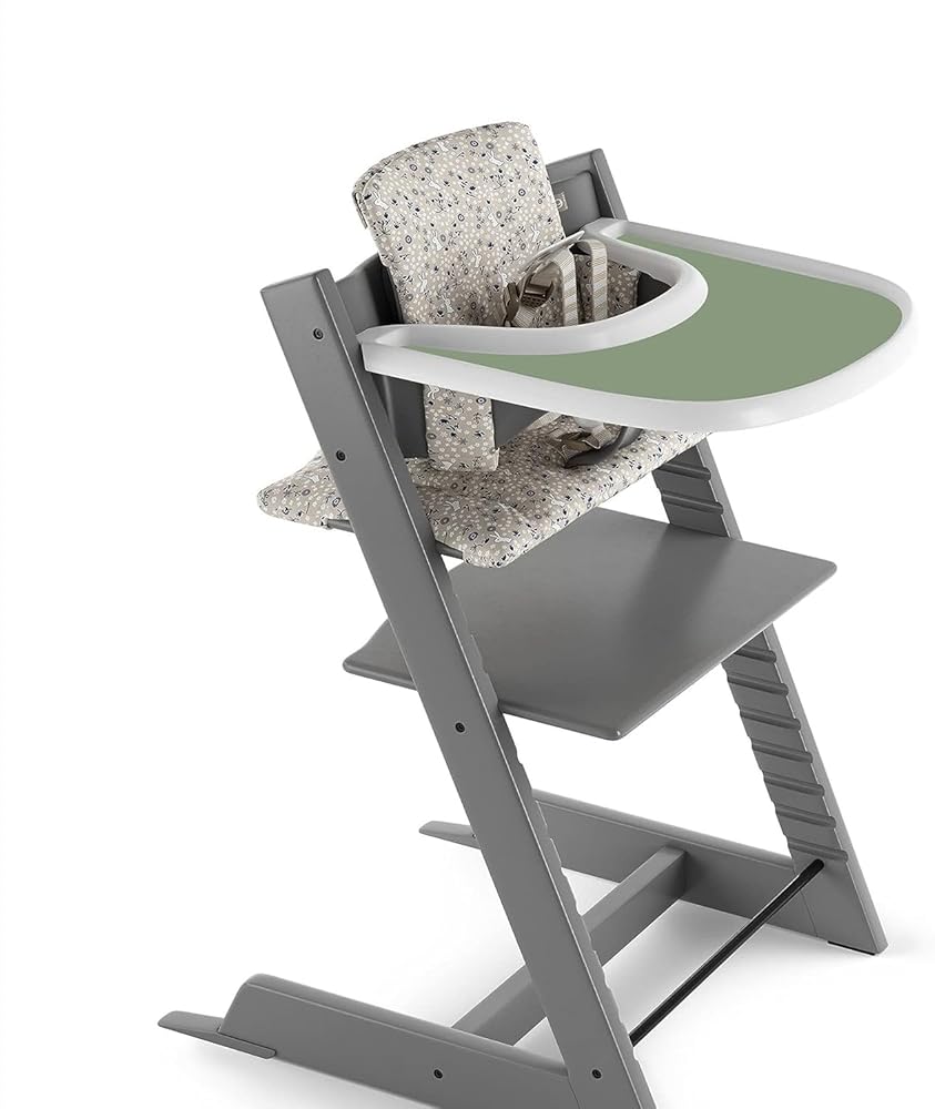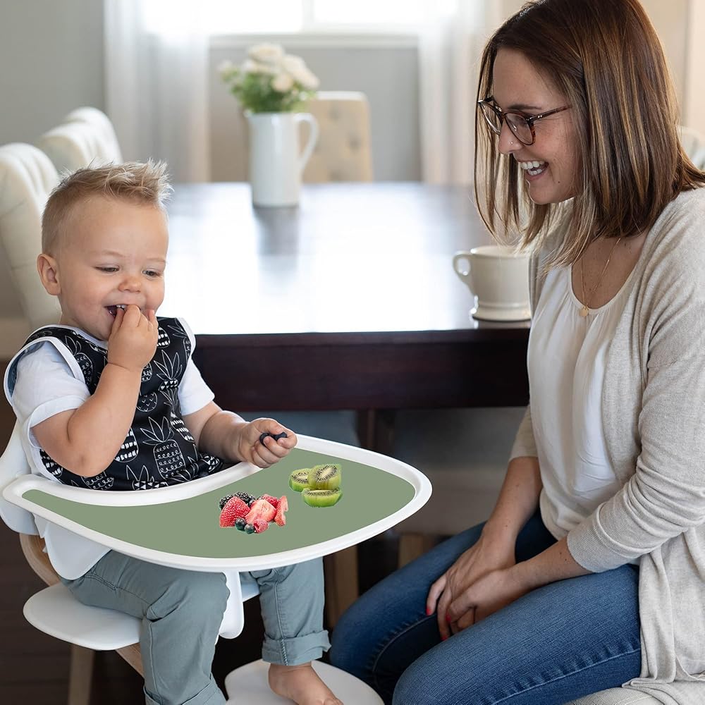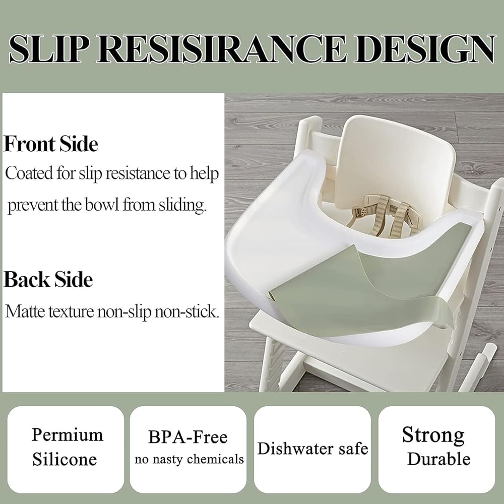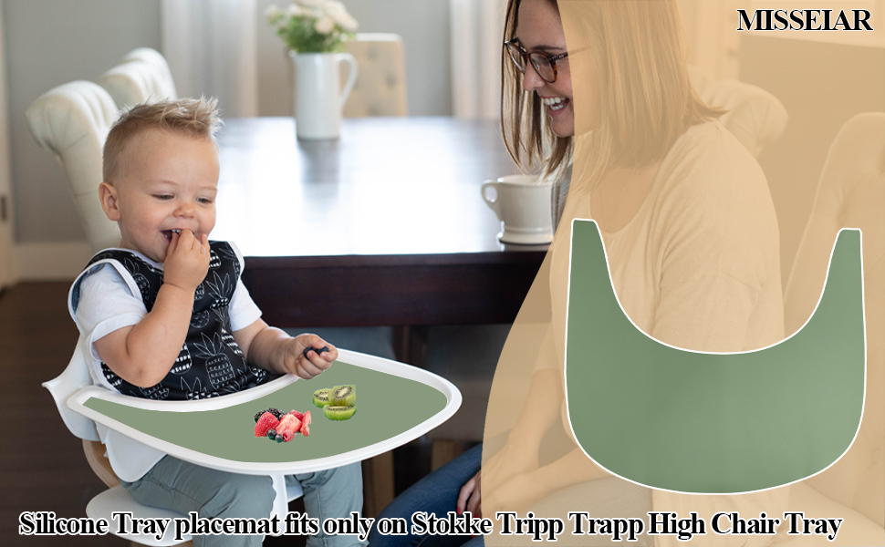 [Fits perfectly but won't stick to the tray ]: Our baby silicone placemats are designed to fit perfectly on your Stokke Tripp Trapp High Chair Tray to prevent all those messy spills from running under the mat to keep your high chair tray clean.
