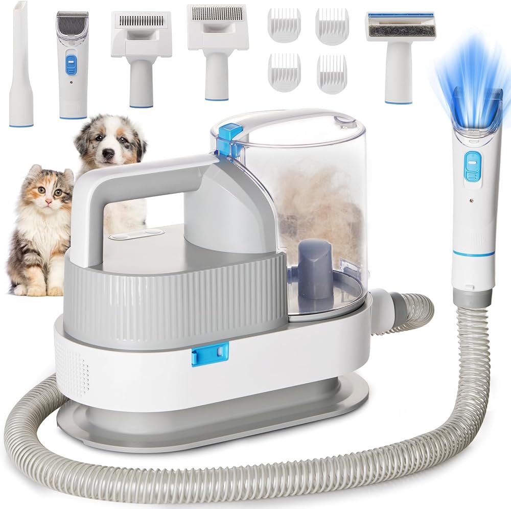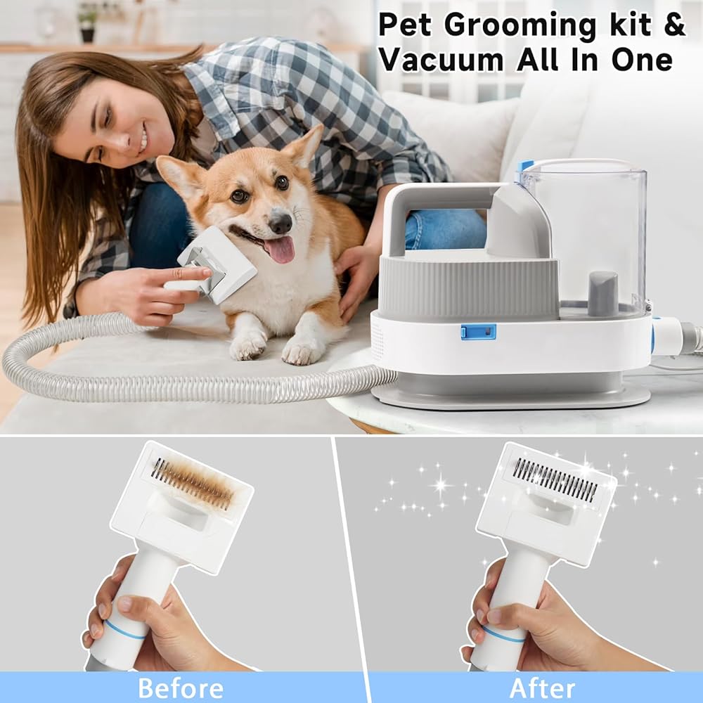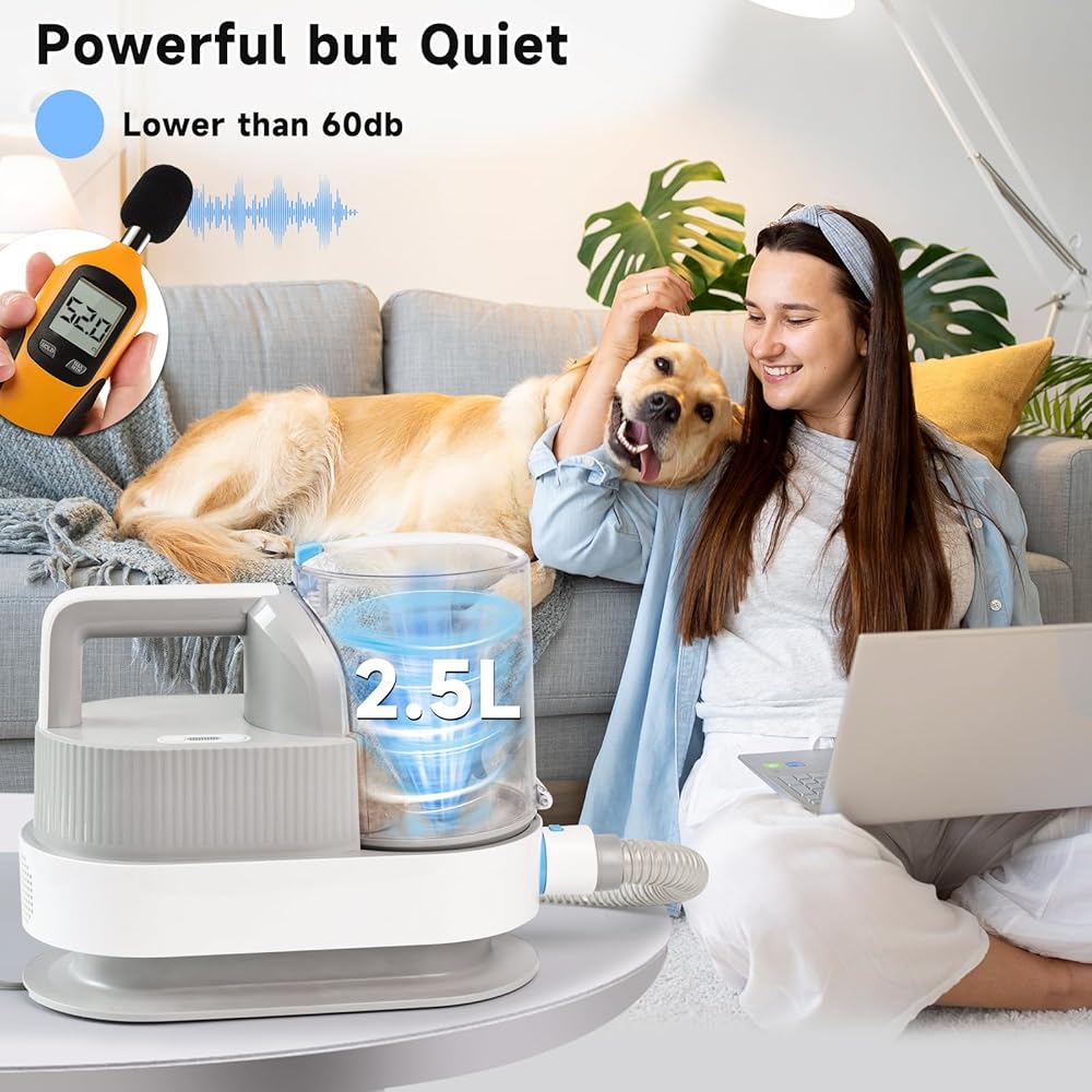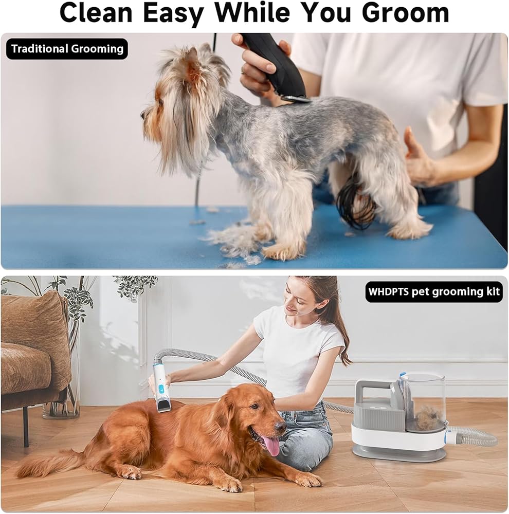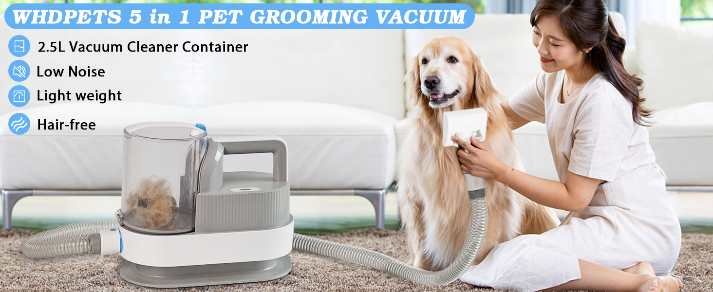 WHDPETS Low Noise Dog Grooming Kit, 6 in 1 Pet Grooming Vacuum with 4 Hair Clipper Comb, 2.5L Dog Hair Vacuum Groomer, Dog Vacuum Brush for Shedding Grooming