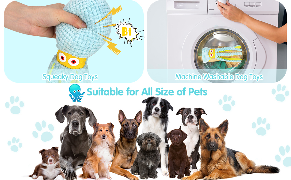 🐶▶Soft & Durable Plush Dog Toys◀ This octopus plush dog toy is made of durable pineapple cotton and super soft fabric, which is thicker and softer than the fabric of any plush dog toy. The seams of the plush dog toy are reinforced to increase the number of times the dog chews and pulls. Perfect for puppy teething toys, it's an ideal Christmas gift for your dog.
