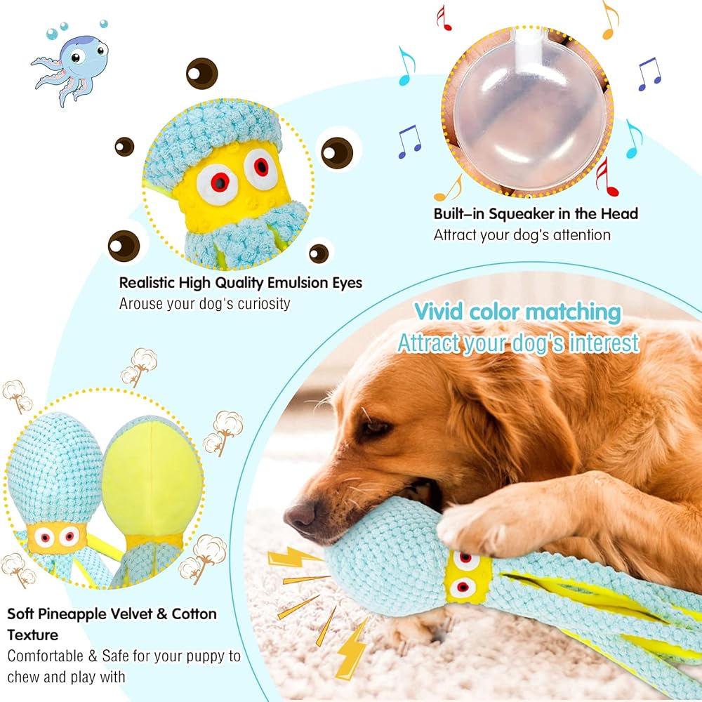 VIWIK Dog Toys for Chewers, Puppy Toys for Boredom and Stimulating, Dog Squeaky Toys Octopus, Interactive Dog Toys for Smart Dogs, Soft Plush Dog Chew Toys, for Dogs