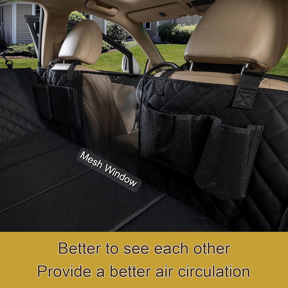 BACK SEAT INTO HAMMOCK STYLE: Zip up 2 side flaps to protect your car doors from dog's scratching. It has a trapezoid shape which can provide an extra protection. Through the mesh window, your pets can see you while getting proper air conditioning
