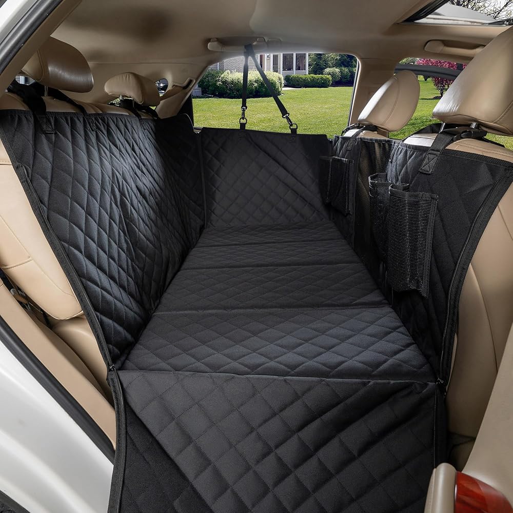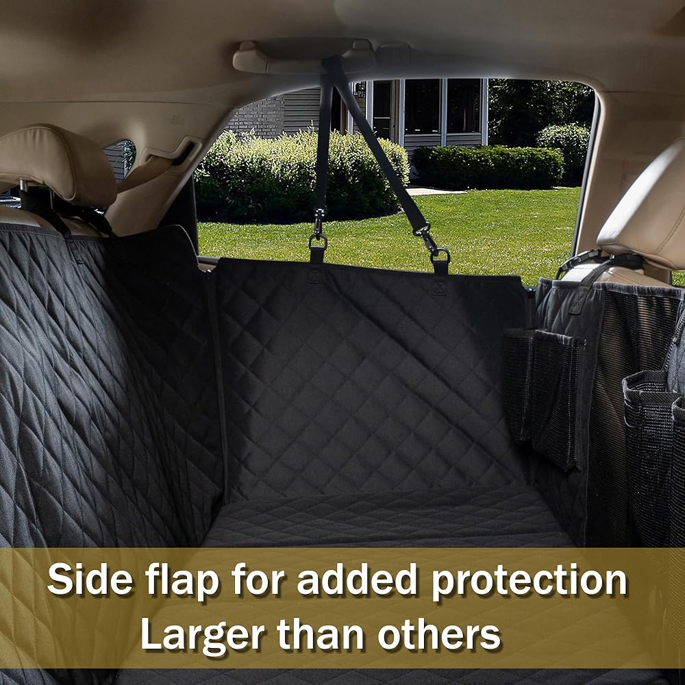 WATERPROOF AND WEAR RESISTANT: The car seat protector is made of high quality, durable waterproof and wear resistant materials. Make the mess in control. Hammock design protects car doors from dog's scratches. No more endless sweep