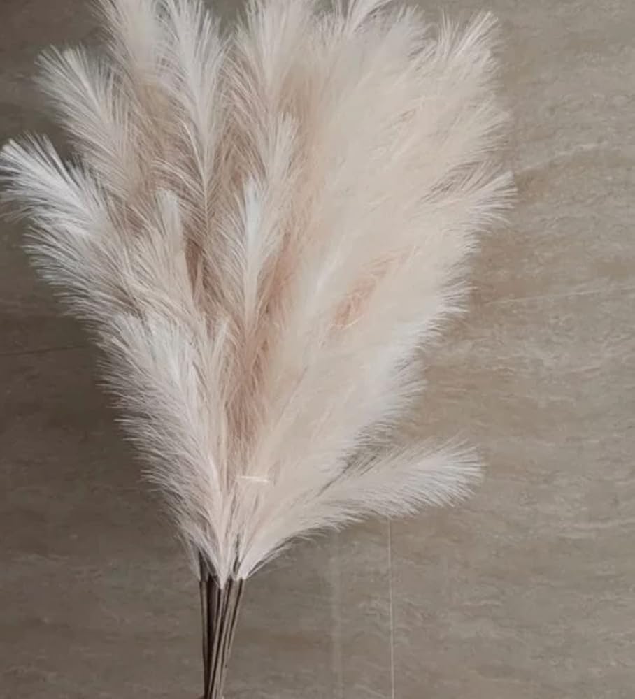 Soft, Fluffy and Thicker- Our Natural Beige Color Large Pampas grass decor is about 120cm tall with 18 branches, together making the bunch fluffy. Stem is made of wire wrapped in brown paper and can be easily bent to fit your vase.