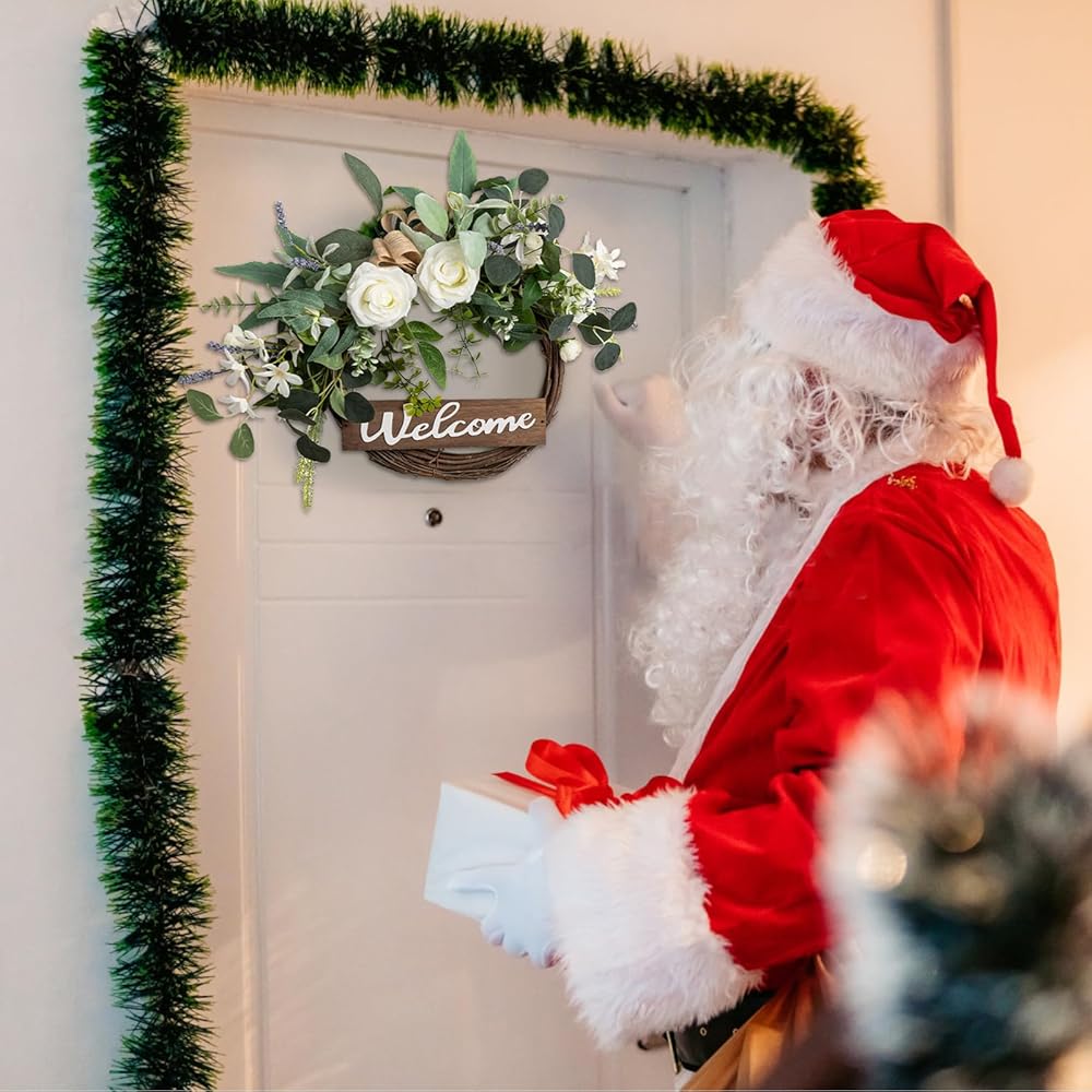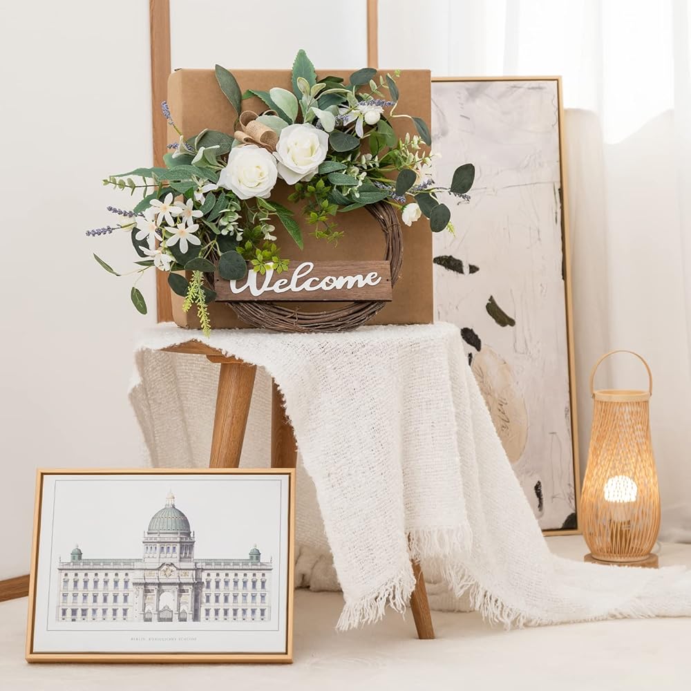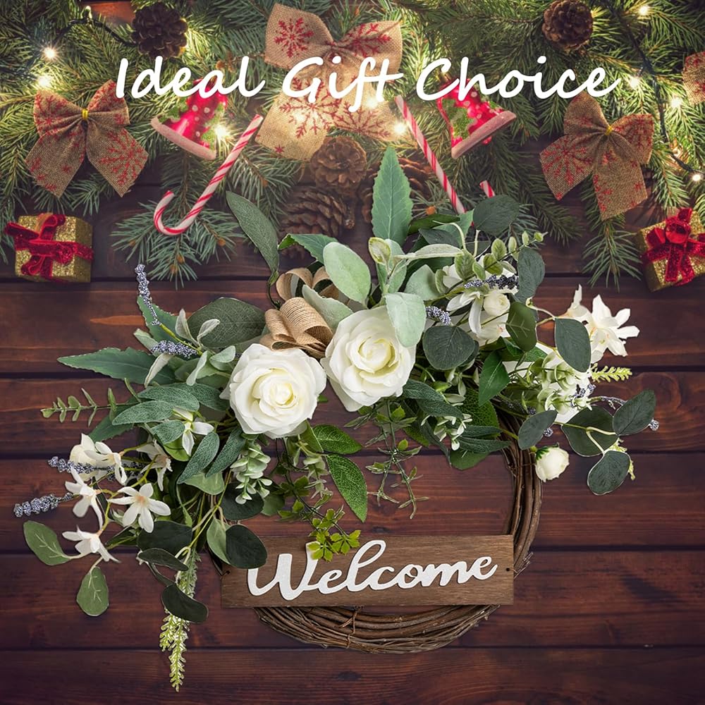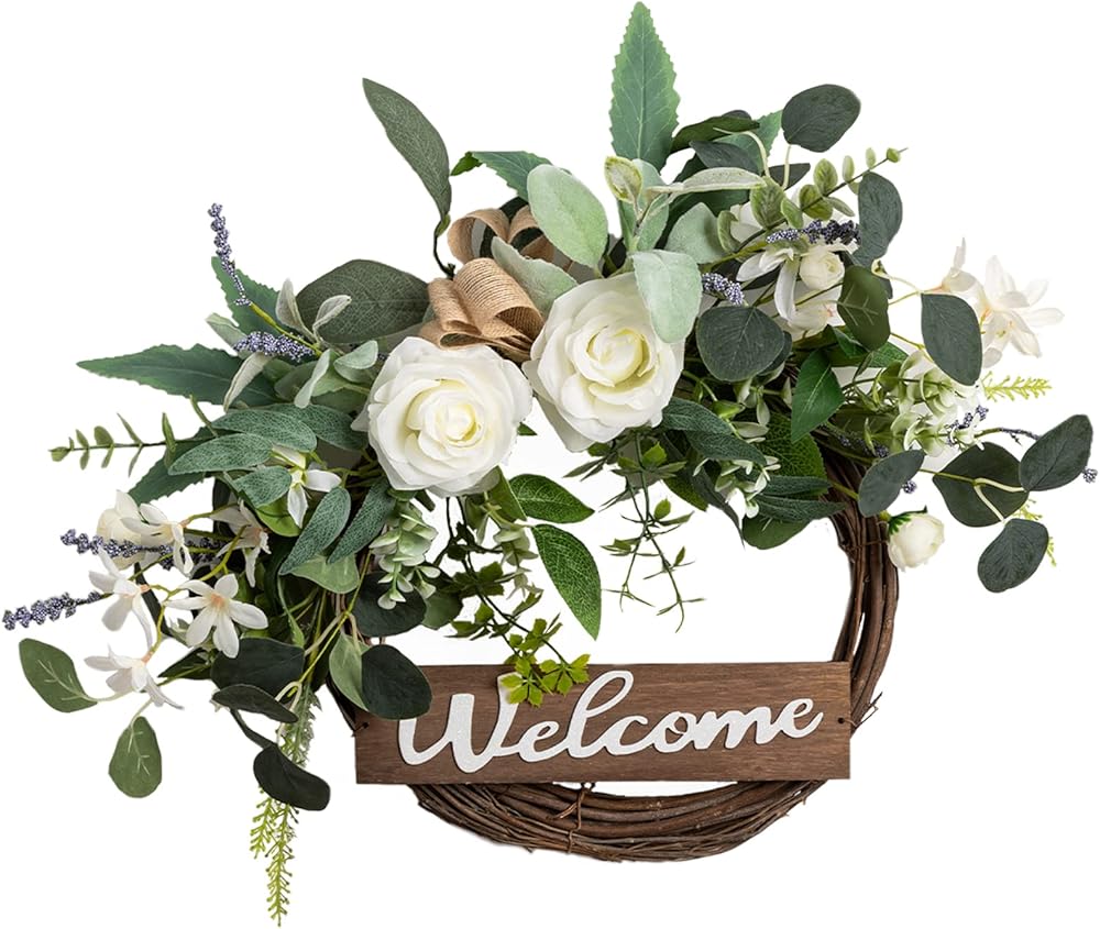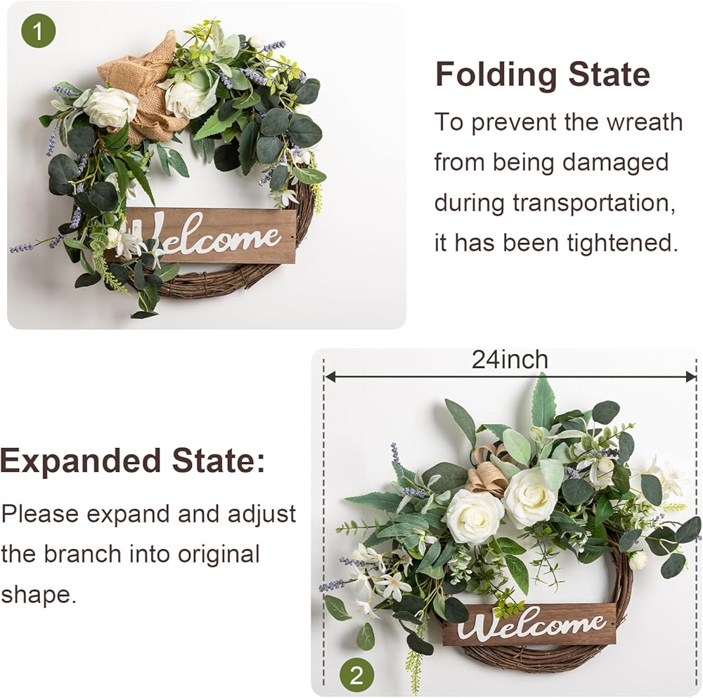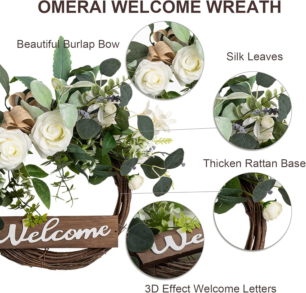【Beautiful Green Eucalyptus Wreath】: The wreaths for front door is handmade by floral designers with carefully chosen good quality materials. We focus on providing stunning realistic looking outdoor wreath. The welcome wreath with vivid letter "Welcome" that features 3D effect, create a warm and hospitable atmosphere for your home.