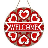Welcome Valentine's Day Love Front Door Sign, Red Hearts Farmhouse Wood Door Hanger Outdoor Outside Porch Decor, Anniversary Wedding Holiday Wooden Wreath Indoor Wall Hanging Decoration
