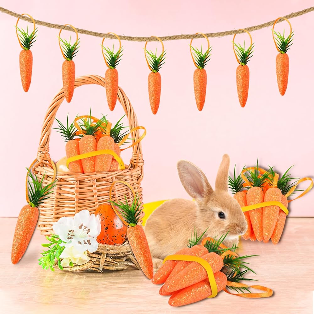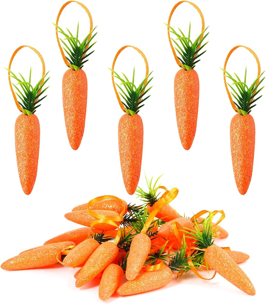 【Shining Foam Carrot】Each Easter simulation carrot hanging decoration is approx. 4.7inches long. These Easter carrots ornaments are made of high-quality styrofoam type material, which are not easy to damage, light in weight, smooth and bright, easy and safe to hange.